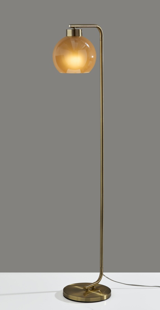 Introducing the 3898-21 Atticus Floor Lamp, a fusion of vintage charm and modern sophistication. With its antique brass finish and globe-shaped amber glass shade, this lamp brings warmth and elegance to any space. The glossy exterior of the shade paired with its frosted interior creates a soft, inviting glow, perfect for creating ambiance in your living room, bedroom, or study. Standing tall at 59 inches, the Atticus Floor Lamp features an on/off touch switch conveniently located on the end of the pole, offering effortless control over your lighting experience.