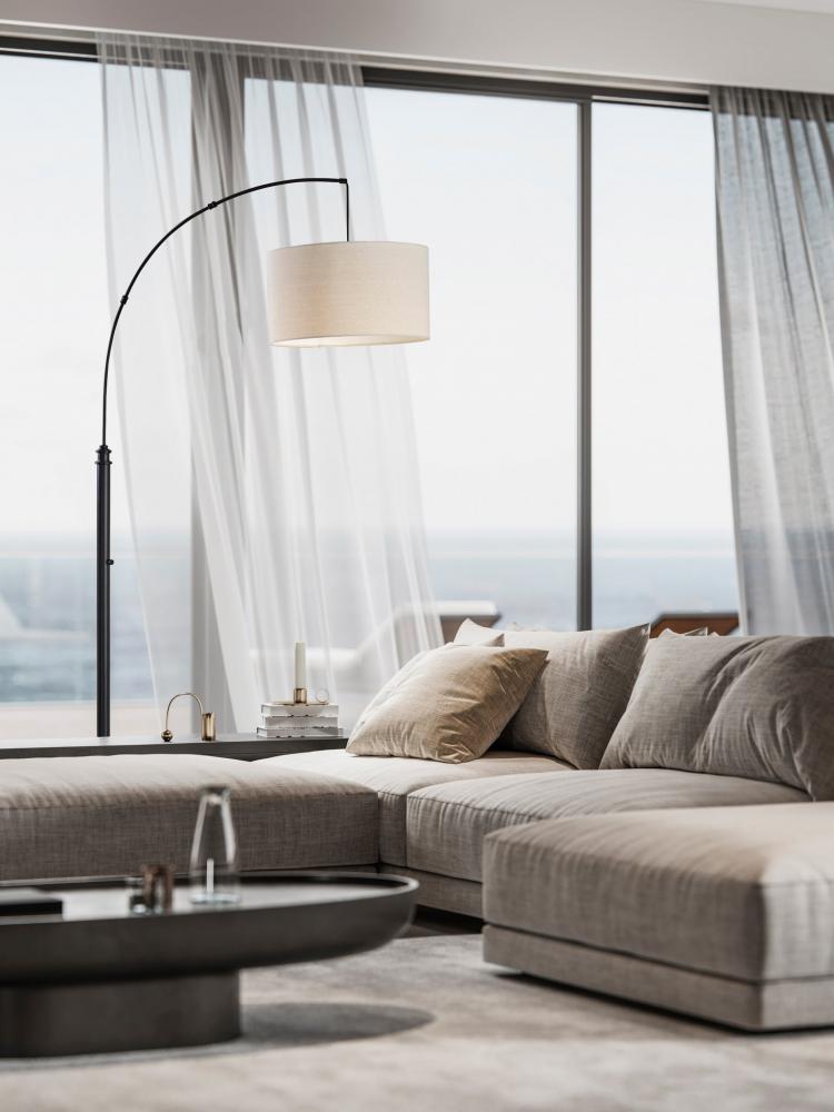 Timeless Elegance: The Barton Arc Lamp features a classic black finish that seamlessly complements a variety of interior design styles.