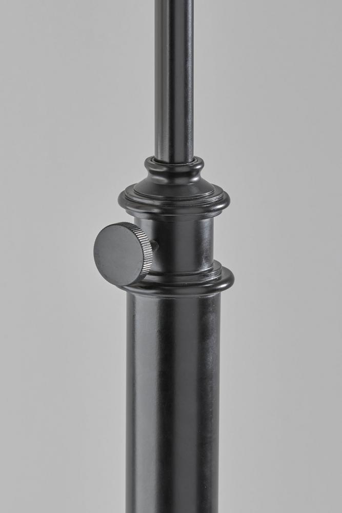 The Barton task table lamp's classic detailing and adjustable height make it a stylish and versatile addition to desks, end tables, and nightstands. With an antique bronze finish that complements Victorian, rustic, and transitional styles, the lamp features a round base and cylindrical tube body with subtle detailing. An arcing stem supports an oatmeal-colored linen drum shade that softly diffuses the light from a 100W bulb. The height of the lamp can be easily adjusted between 25" and 32" using the knob located on the tube, allowing you to customize the lamp height to your space. For a brighter look, the table lamp is also available with an antique brass finish. Complete your decor with the coordinating Barton task floor lamp.