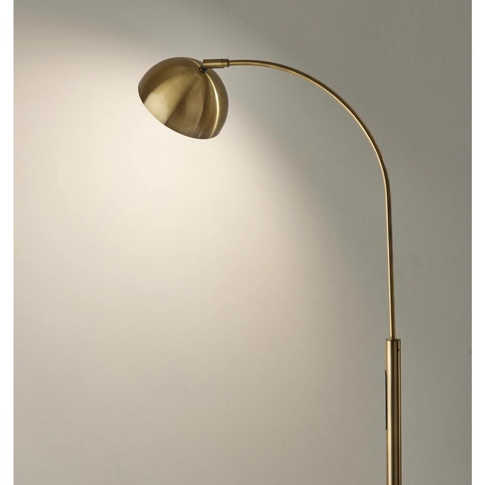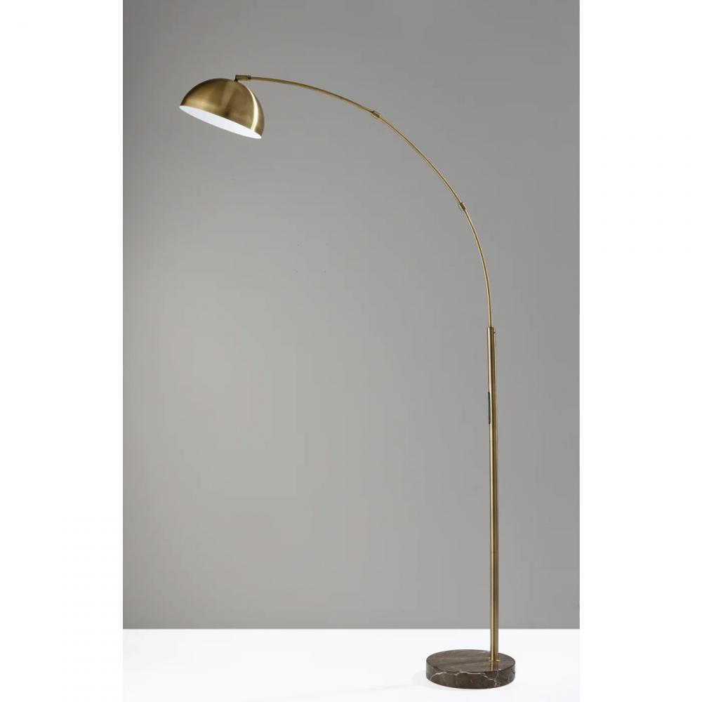 Displaying a modern silhouette and elegant blend of materials, the Bolton LED arc lamp adds functional lighting to your space. At 71.5" tall and featuring an arcing stem, this lamp fits conveniently behind furniture. A tall antique brass pole and matching arcing stem are anchored securely by an 11" diameter round brown marble base. Topping the stem is a dome-shaped antique brass shade with an articulation point, allowing you to direct the light wherever it's needed. A convenient touch switch located on the pole gives you full control of the lighting brightness and color temperature at the touch of a finger, while the integrated 28W LED light is softened by a frosted diffuser. Complete your decor with the coordinating Bolton LED 3-arm arc lamp, floor lamp, and desk lamp.