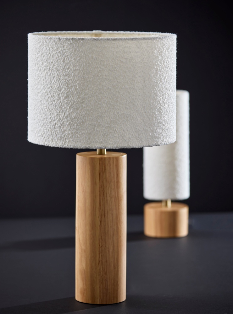 Introducing the 3892-12 Brayden Table Lamp, a fusion of natural beauty and contemporary sophistication. Crafted with a durable natural rubberwood base and complemented by an off-white boucle fabric shade, this table lantern exudes an understated elegance. Standing tall at 28 inches, it casts a soft and inviting glow, ideal for illuminating your living space with warmth and style. Equipped with a convenient 3-Way rotary socket switch, adjusting the brightness to suit your mood or task is effortless.
