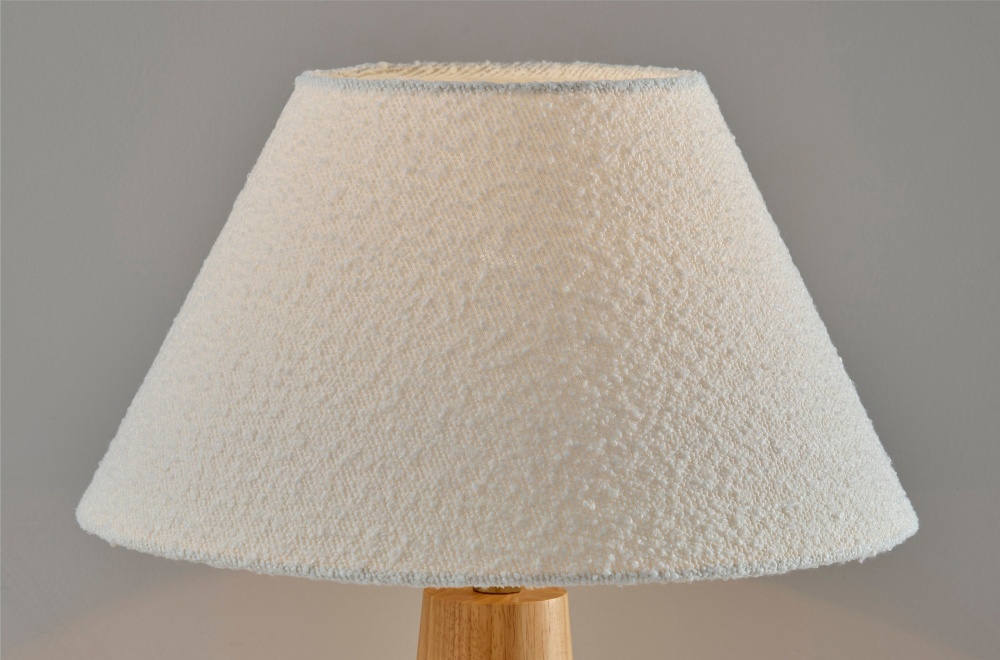 Introducing the 3893-12 Brayden Tapered Table Lamp, where contemporary design meets natural allure. Crafted with a tapered natural rubberwood base and adorned with an elegant off-white boucle fabric shade, this lamp exudes timeless charm. Standing at 27 inches tall, it serves as a striking focal point in any room while providing gentle illumination. With its 3-Way rotary socket switch, you can easily adjust the brightness to suit your needs, making it perfect for reading, relaxing, or adding ambiance to your space.