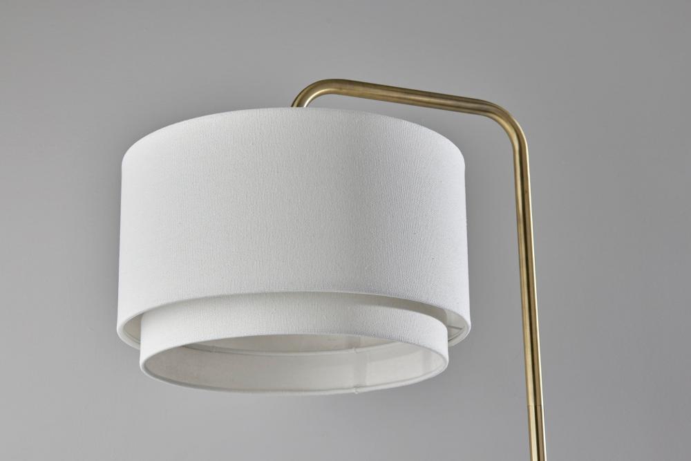 Introducing the 5195-21 Brinkley Floor Lamp, a magnificent lighting solution that combines style and functionality in one exquisite package. Crafted with a luxurious brass finish, this floor lamp adds a touch of elegance to your living space. Its defining feature is the two-tiered white fabric drum shade, designed to emit a soft and inviting glow. The convenient on/off rotary socket switch ensures effortless control over the lamp's illumination. Elevate your home decor with the Brinkley Floor Lamp, where sophistication meets practicality.