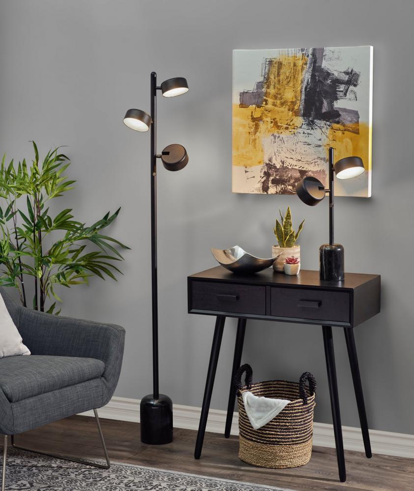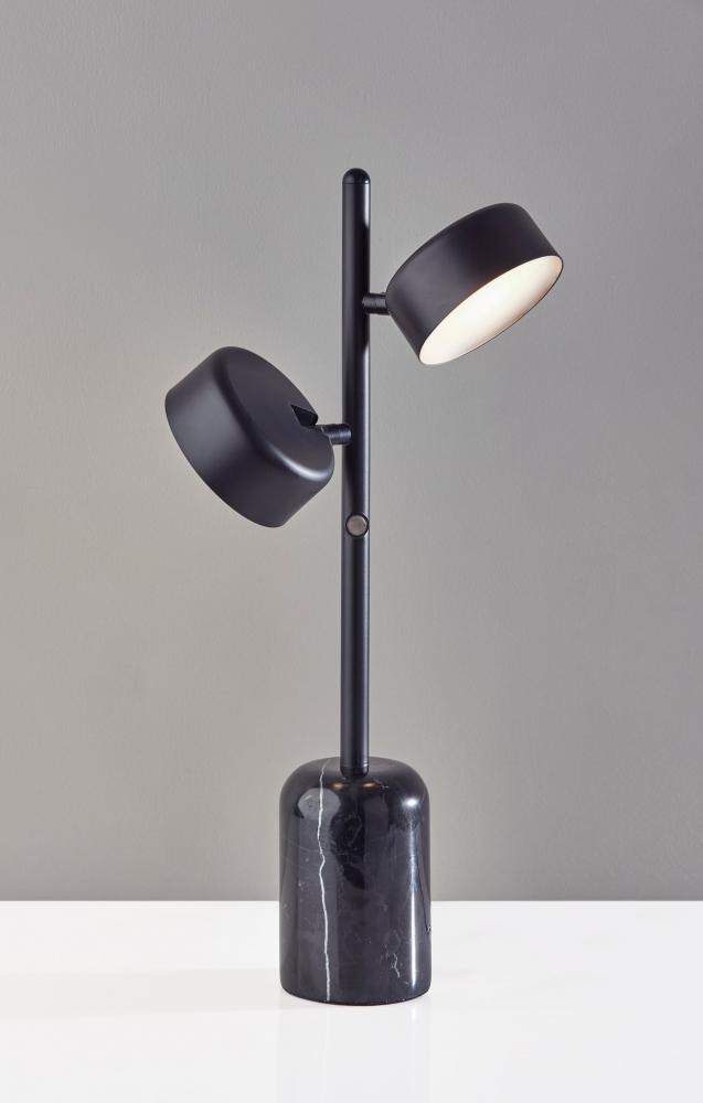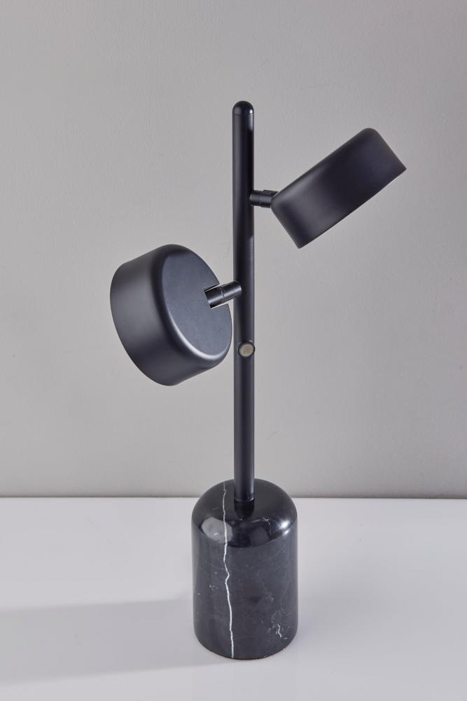 With a slim, space efficient construction and modern chic design, the 20.75" tall Bryant LED table lamp is a stylish addition to desks, nightstands, and accent tables. Its tall cylindrical black marble base creates a sense of refinement and supports the long and slim black metal pole. Branching from the pole are two black metal disc-shaped shades measuring 4.5" in diameter and 2" tall that can be rotated, allowing you to direct the light wherever it's needed. Each shade houses an integrated 6W LED light controlled by a 3-step touch dimmer switch located on the pole to easily change the brightness between high, medium, and low. Complete your decor with the coordinating, tall Bryant LED tree lamp.