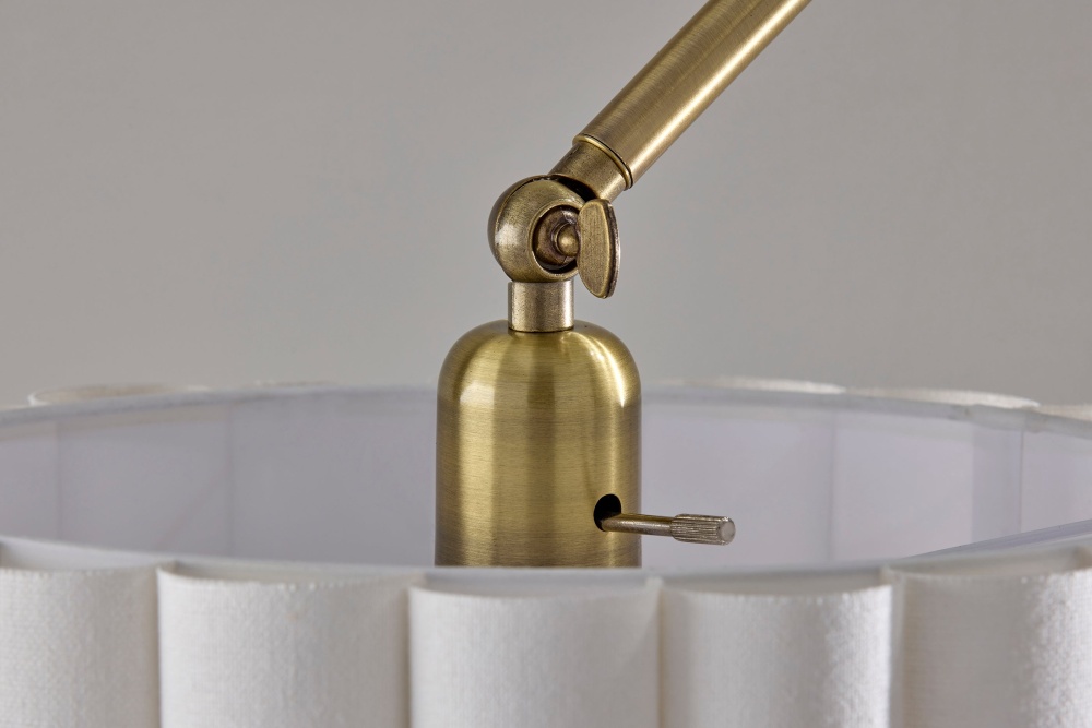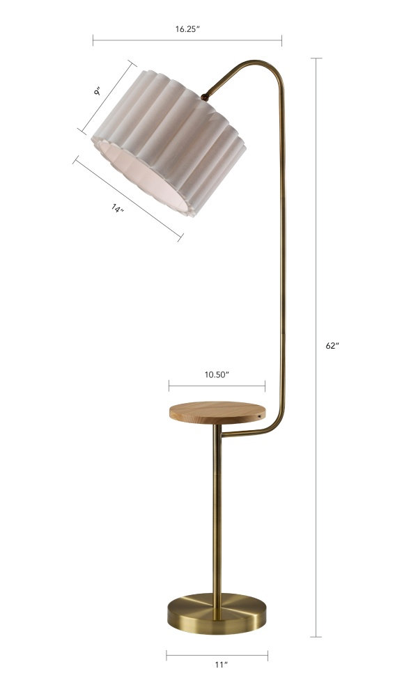 Elevate your space with the Laine Floor Lamp, a striking blend of mid-century modern design and functional elegance. Crafted with a warm walnut wood and antique brass metal base, this 62.5" tall lamp features a scalloped oatmeal linen fabric shade that adds soft texture and timeless appeal. Perfect for living rooms, bedrooms, or reading corners, the Laine is equipped with a 3-way rotary socket switch for adjustable brightness, making it both a stylish statement and a versatile lighting solution.