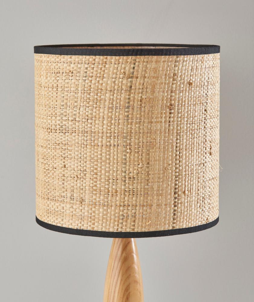 The perfect addition to coastal, transitional, or farmhouse decor, the 22.5" tall Cayman table lamp imbues any space with a stylish blend of materials. A round black metal base supports a sleek stem crafted of natural wood that highlights the attractive wood grain. Topping the lamp is a 9" tall drum shade. The lamp's woven natural rattan shade softly disperses the light from a 100W bulb and is trimmed with black fabric along the top and bottom to complement the black metal base. A 3-way rotary socket switch provides a variety of lighting options, allowing you to easily adjust the brightness between low, medium, and high. Complete your decor with the coordinating 63" tall Cayman floor lamp.