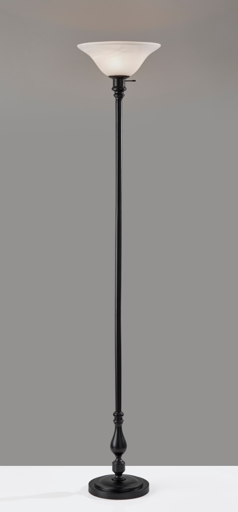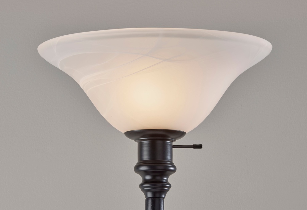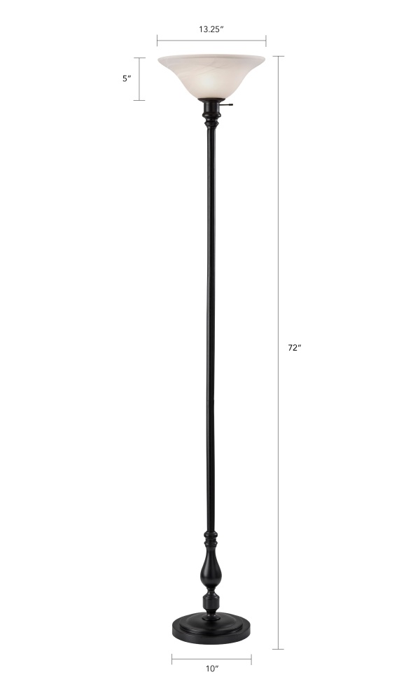 Bring timeless elegance and powerful illumination to your space with the Claret Torchère. Standing at an impressive 72 inches, this floor lamp features a beautifully turned black wood pole that adds classic detail and visual texture. Topped with a fluted white alabaster glass shade, it softly diffuses light upward, creating a warm and inviting atmosphere. The 150W 3-way rotary socket switch allows for adjustable brightness, making the Claret perfect for everything from ambient mood lighting to bright task illumination in living rooms, dens, or reading corners.