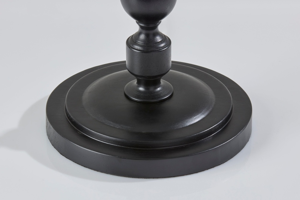 Sophisticated design: Turned black wood pole offers a timeless, classic look.