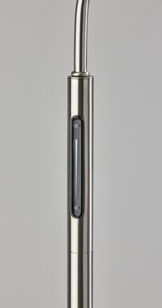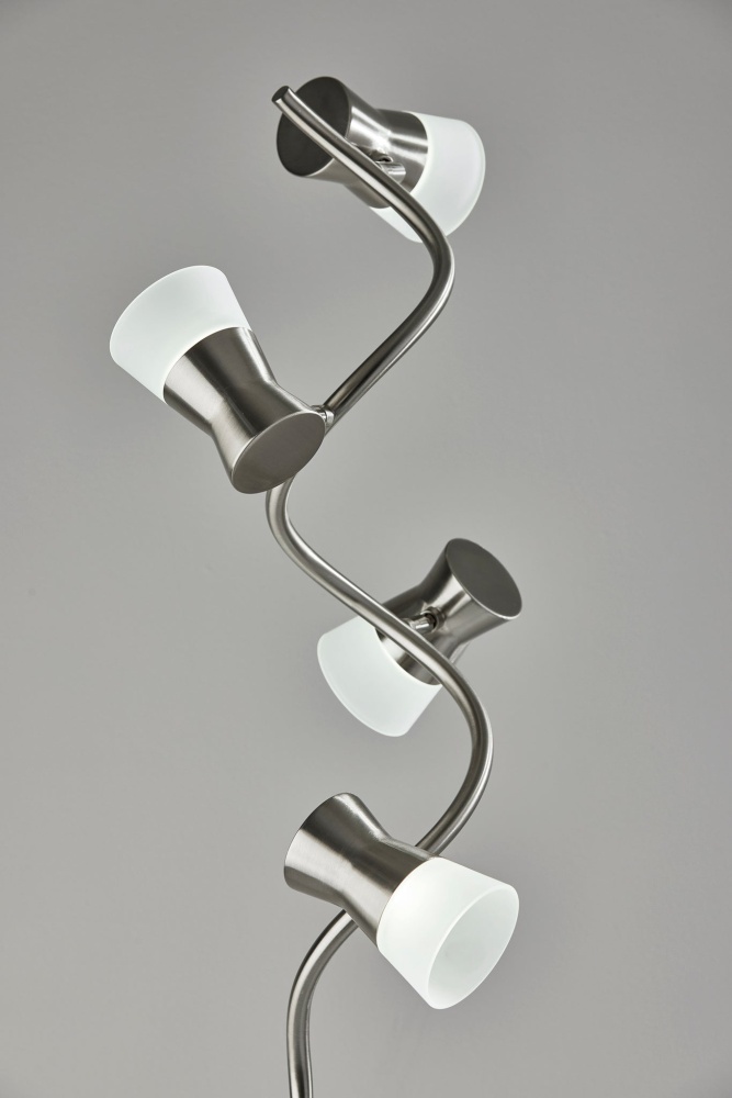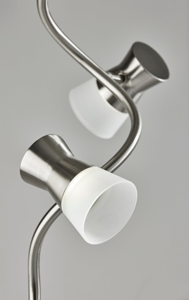 Excelling at both accent lighting and brightening an entire room, the Cyrus floor lamp's gracefully twisting silhouette blends style and function. Crafted with a brushed steel finish, the thin, twisting pole supports four LED light fixtures at offset heights and angles, bringing 800 lumens of energy-efficient 12W LED lighting. The LED lighting is integrated into the lamp and softened by frosted glass shades. Anchoring the lamp is a 10" diameter round base in brushed steel finish leading to a matching pole. With a smart switch located on the pole, you can control a full-range dimmer and five settings to find the perfect color temperature for your mood, from crisp to warm, at the touch of a finger. The lamp is powered by a 5' black cord. Complete your decor with the coordinating Cyrus LED table lamp.