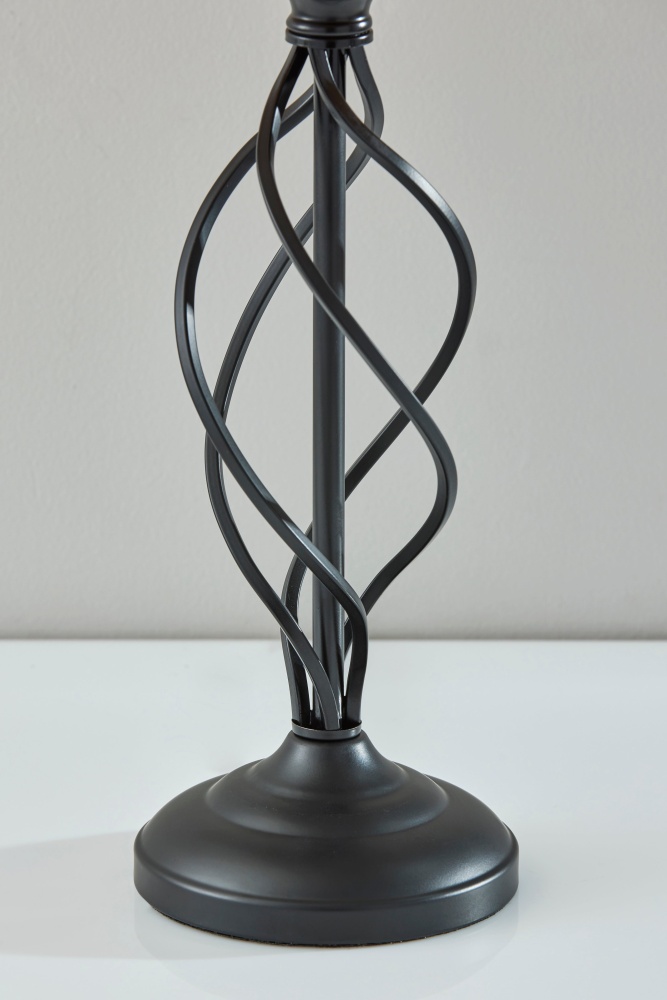 Introducing the SL3978-02 Darcy Table Lamp, a sophisticated addition to your home decor. Featuring a sleek black metal open spiral-shaped base complemented by a textured grey fabric shade, this lamp exudes contemporary elegance. Standing at a height of 26 inches, it's the perfect choice for adding ambient lighting to your living room, bedroom, or office. The convenient on/off rotary switch located on the socket ensures easy operation, making it a practical and stylish lighting solution for any space.
