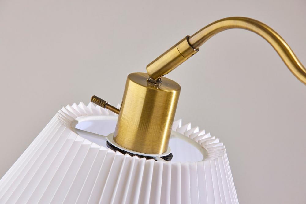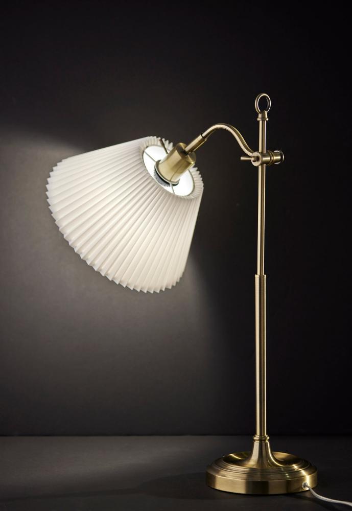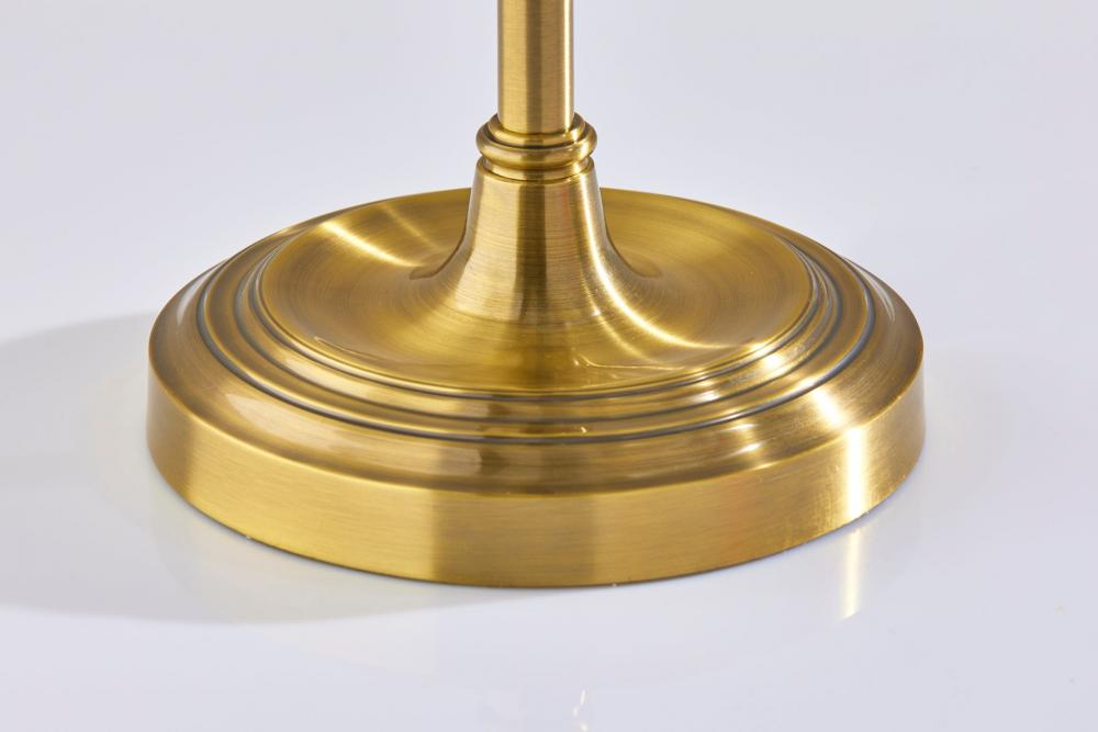 Introducing the 3942-21 Derby Table Lamp, a classic and versatile lighting addition that effortlessly blends timeless design with modern functionality. This table lamp showcases an Antique Brass finish that infuses vintage charm and sophistication into your decor. Its pleated white fabric shade adds a touch of elegance and warmth to your living space. With a height of 26 inches and an adjustable shade, the Derby Table Lamp offers both focused illumination and style, making it a perfect choice for enhancing the ambiance of your room. Designed for user-friendly operation, this lamp features an on/off rotary socket switch, conveniently placed for easy lighting control. Whether used as a reading lamp, an accent piece, or a source of ambient light, the Derby Table Lamp seamlessly marries form and function, elevating the overall aesthetic of your space.