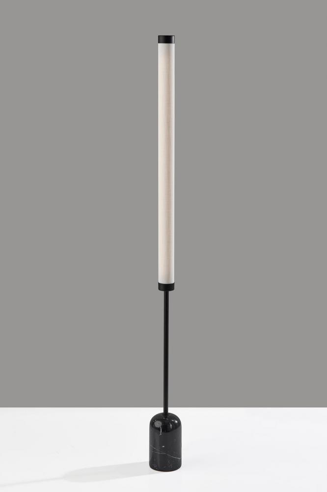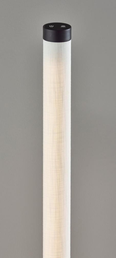 The Dorsey floor lamp combines a rich mix of materials, rounded contemporary design, and LED energy efficiency for the perfect accent lighting for your space. The 54.5" tall and slim 4.25" diameter lamp features a domed base in black marble. A black pole supports a cylindrical white textured cotton shade. Both economical and versatile, the integrated 24W eco-friendly LED produces up to 1,200 lumens to brighten your space. Operated by a touch switch conveniently located on the top of the light shade, the lamp projects light with three brightness settings and three color temperature settings all controlled by the touch of a finger. The lamp is also powered by a 5' black cord. Complete your decor with the Dorsey LED table lamp.