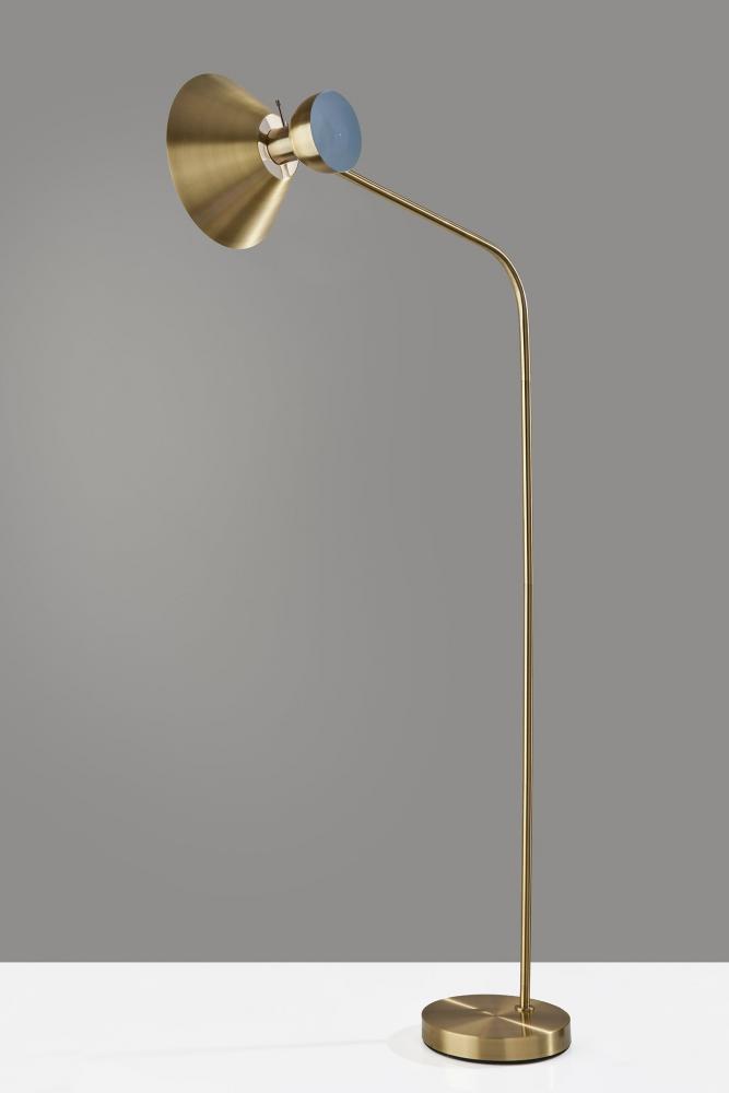 Upgrade your home lighting with the 5141-01 Duke Floor Lamp in a timeless brass finish. This lamp combines elegant aesthetics with functionality, making it a stylish addition to any room. Featuring a large brass metal task shade, it offers both directed illumination and a touch of classic sophistication. The lamp's arched arm provides versatility with a generous 34" reach, allowing you to position the light precisely where you need it. Standing tall at 67.5", it makes a bold statement and brightens up your living space. The on/off rotary switch located on the shade ensures easy operation, giving you control over your lighting experience. With its blend of style and utility, the Duke Floor Lamp brings a touch of refinement to your home.
