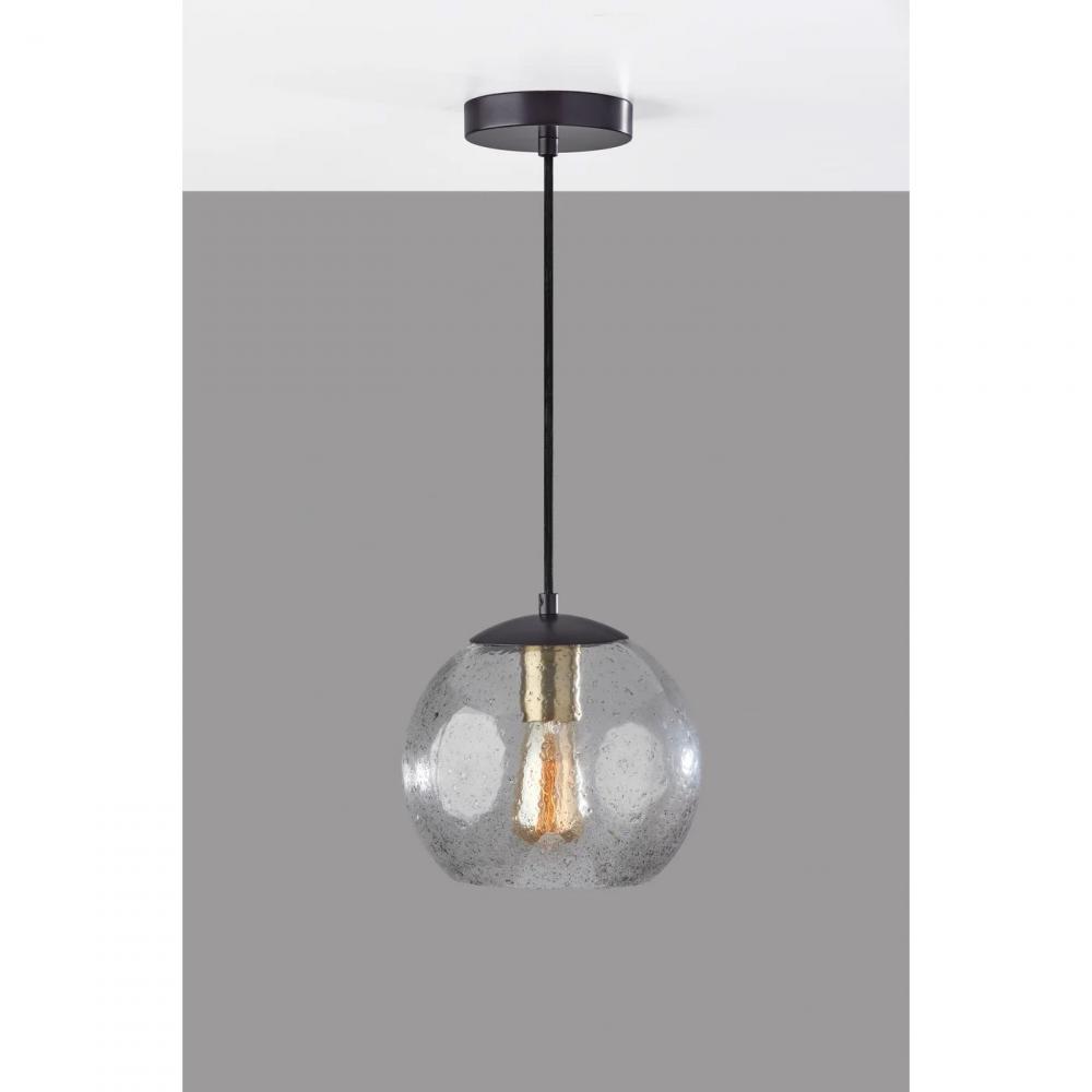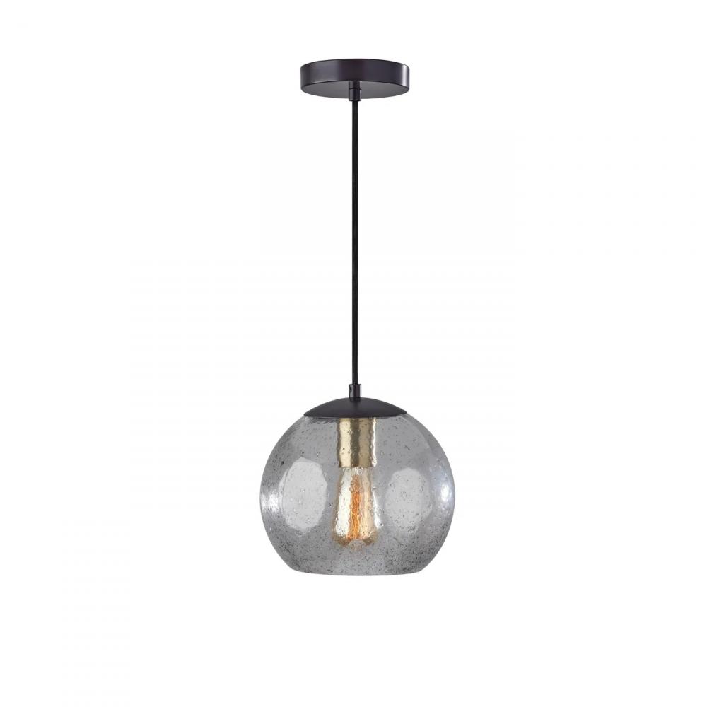 Warm, rustic elements like vintage-inspired glass and dark bronze finish with brass accents are reimagined with a modern flair in the 7.625" tall Edie pendant light. Hang it by itself or pair it with several more to create a stunning effect and add illumination to your kitchen, dining area, bedroom, or bathroom. The speckled glass orb shade casts a warm light and is ideal for highlighting a 60W Edison-style lightbulb (not included). With clean and simple style lines, a slim cord leads to the 5" round base in a dark bronze finish. With a 6' black fabric-covered cord, the height of the lamp can be adjusted to suit the needs of any room regardless of the ceiling height. Complete your home's decor with the coordinating Edie table lamp, wall lamp, and floor lamp.