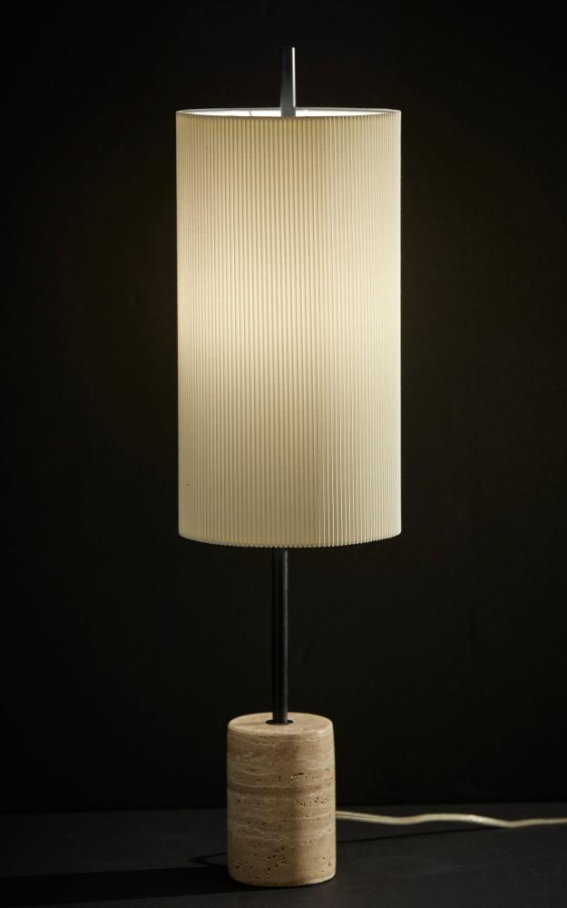 Introducing the 3961-01 Eleanor Table Lamp, a perfect blend of classic elegance and modern design. This table lamp showcases a sleek black finish that adds a touch of sophistication to any room. Its tall drum-shaped off-white knife pleated fabric shade exudes timeless charm. Standing at a height of 30 inches, the Eleanor Table Lamp becomes a stylish focal point, supported by a substantial chunky travertine stone base. With an on/off pull chain switch, it offers easy and convenient control over your lighting, making it a versatile addition to your home decor. Elevate your space with the 3961-01 Eleanor Table Lamp, where classic meets contemporary in perfect harmony.