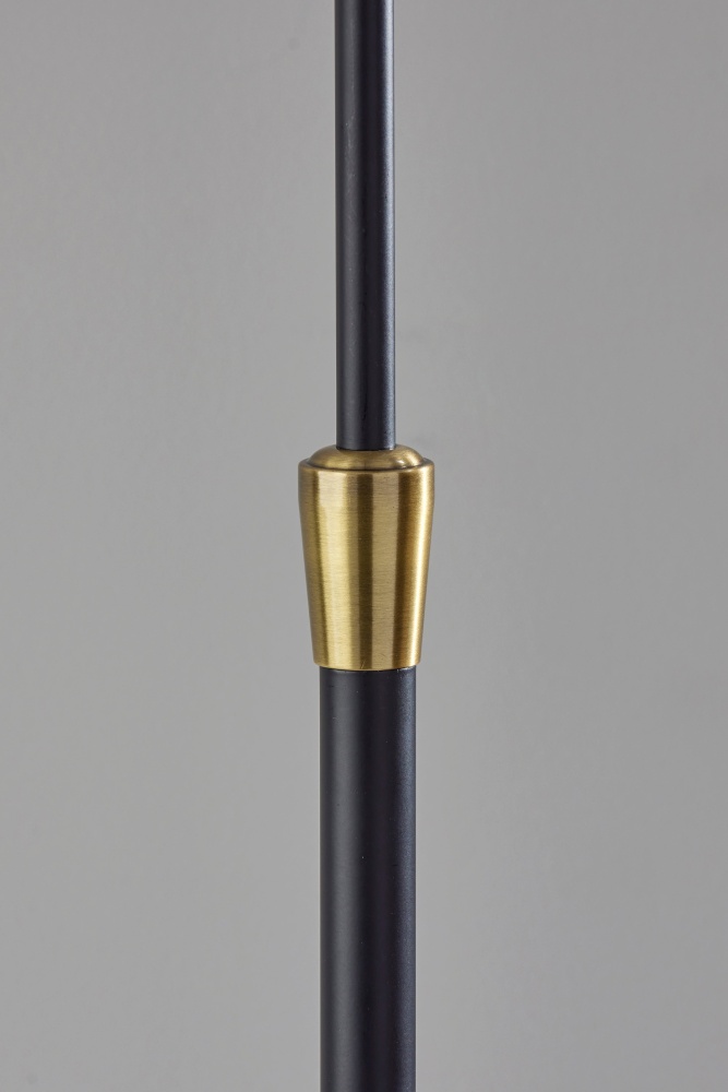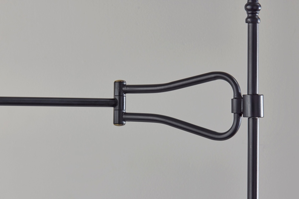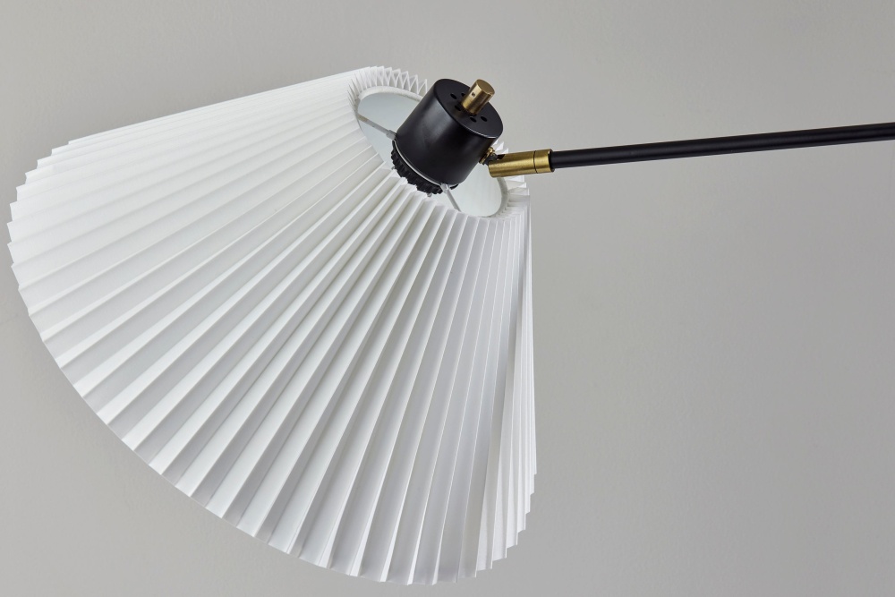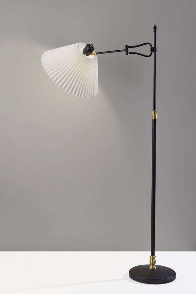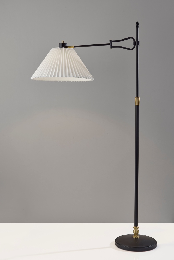 Introducing the 3969-01 Elijah Floor Lamp, a perfect blend of modern design and timeless elegance. Featuring a sleek black finish with antique brass accents, this lamp exudes sophistication and style. The pleated off-white fabric shade adds a touch of classic charm, while the swing arm adjustability allows you to direct light exactly where you need it. Standing tall at 61.25 inches, this floor lamp is ideal for illuminating your living room, reading nook, or office. Equipped with an on/off rotary switch on the socket cap, it offers easy and convenient operation.