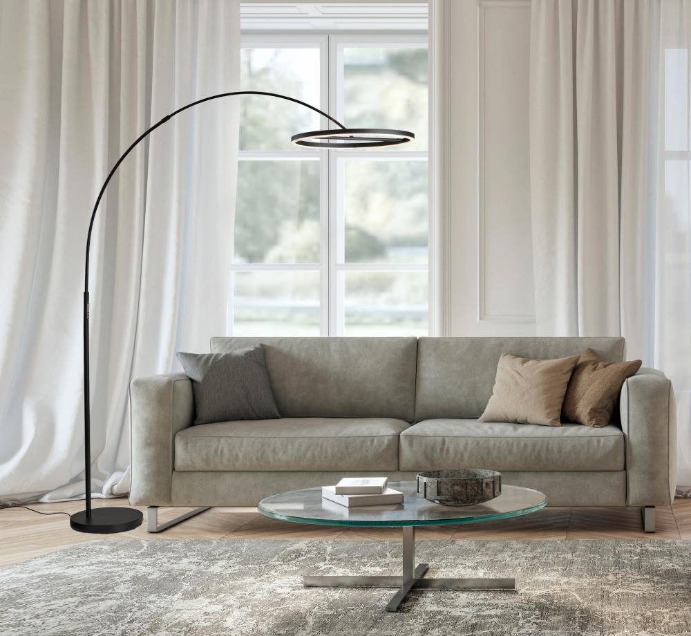 Introducing the 2154-01 Falcon LED Arc Lamp, a striking fusion of contemporary design and intelligent illumination. This arc lamp boasts a sleek black finish that embodies modern elegance. Its distinctive black metal ring-shaped shade is paired with a frosted rubber diffuser, delivering a captivating and highly functional lighting solution. With an impressive height of 81.5 inches and an expansive reach of 67 inches, the Falcon LED Arc Lamp provides flexible and adjustable lighting for your space. Designed for precision control, this lamp features a touch-sensitive smart switch that allows you to tailor your lighting experience. With six brightness levels and five color temperature settings at your fingertips, you can create the perfect ambiance for any occasion. The Falcon LED Arc Lamp is more than just a light source; it's a refined lighting solution that enhances and elevates your environment.