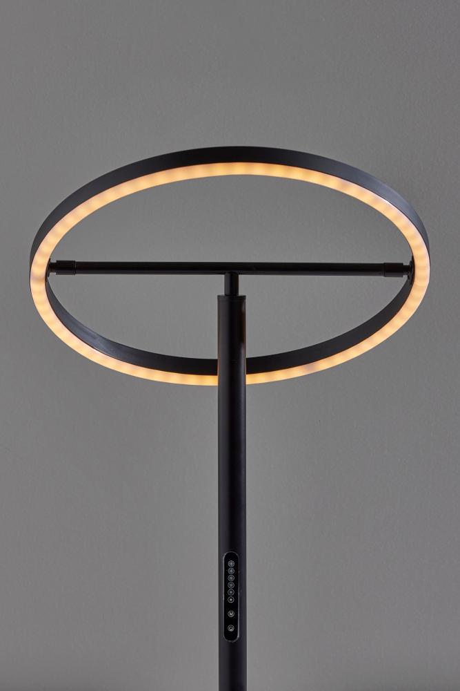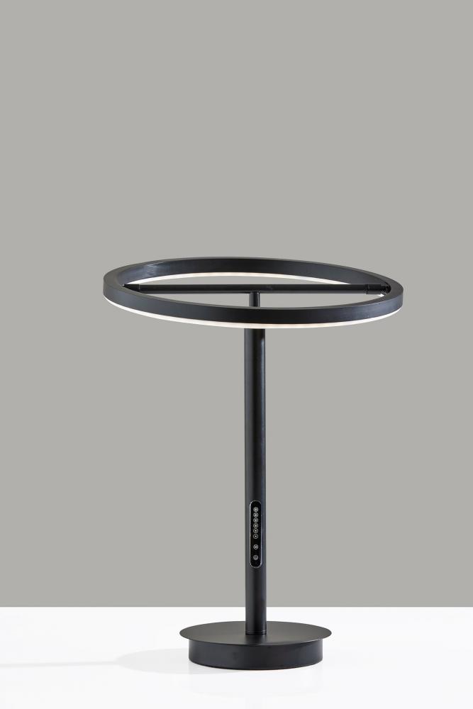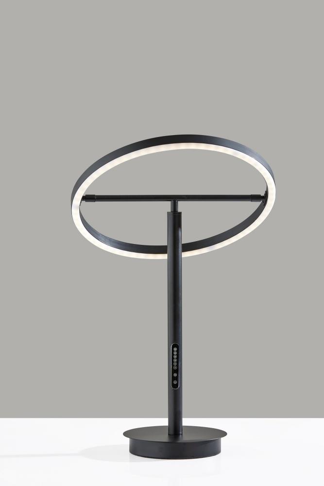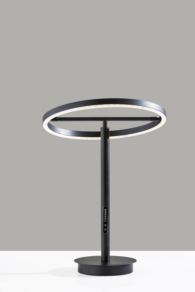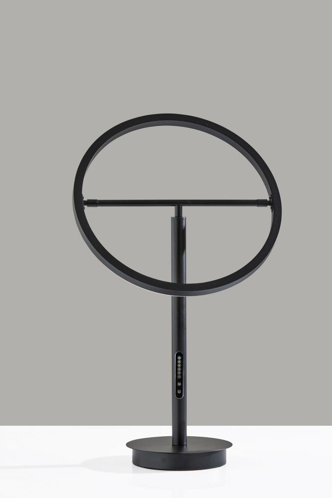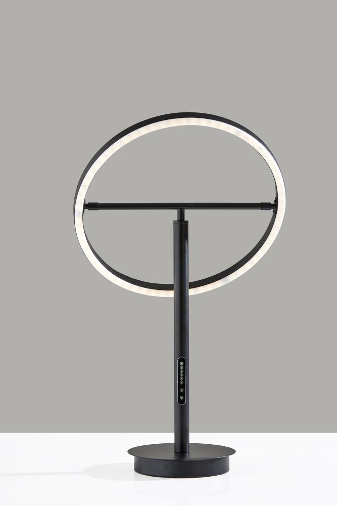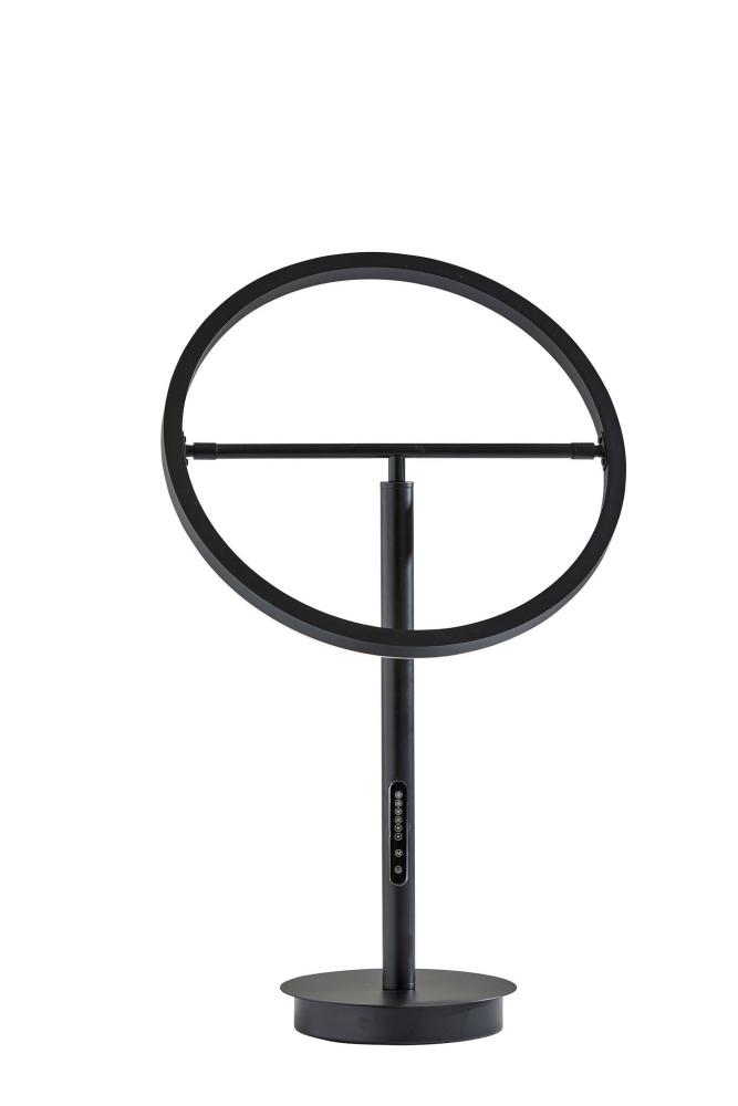 Introducing the 2152-01 Falcon LED Table Lamp, a modern marvel of lighting innovation. This table lamp features a sleek black finish that exudes contemporary elegance. Its unique black metal ring-shaped shade is paired with a frosted rubber diffuser, creating a captivating and functional design. With an adjustable shade, height ranges from 18 to 24.5 inches. Equipped with a touch-sensitive smart switch, this lamp provides remarkable control over your lighting experience. It features six brightness levels and five color temperature settings, allowing you to tailor the illumination to your preference. The Falcon LED Table Lamp is not just a light source; it's an intelligent lighting solution that enhances your space.