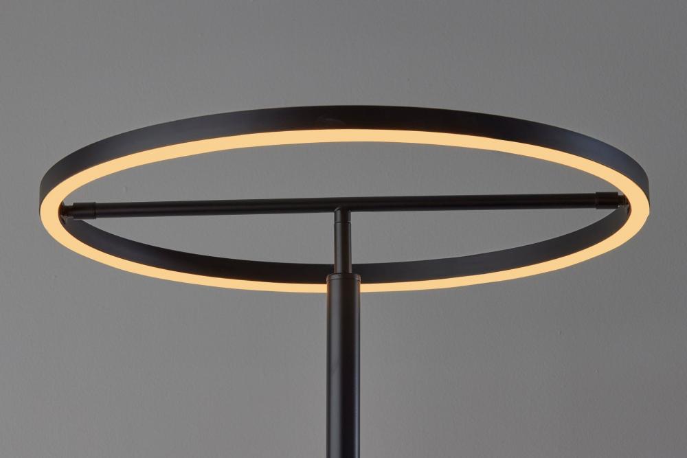 Introducing the 2153-01 Falcon LED Floor Lamp, a sophisticated and versatile lighting masterpiece that seamlessly blends contemporary design with intelligent functionality. This floor lamp features a sleek black finish that radiates modern elegance. Its distinct black metal ring-shaped shade, paired with a frosted rubber diffuser, creates a captivating and efficient lighting solution. With an impressive height of 70 inches and an adjustable shade, the Falcon LED Floor Lamp provides adaptable and customizable illumination for your space. Designed to cater to your lighting needs, this lamp boasts a touch-sensitive smart switch that empowers you to personalize your lighting experience. Offering six brightness levels and five color temperature settings, this lamp allows you to craft the perfect ambiance for any situation. The Falcon LED Floor Lamp is not merely a light source; it's a refined lighting solution that elevates your environment.