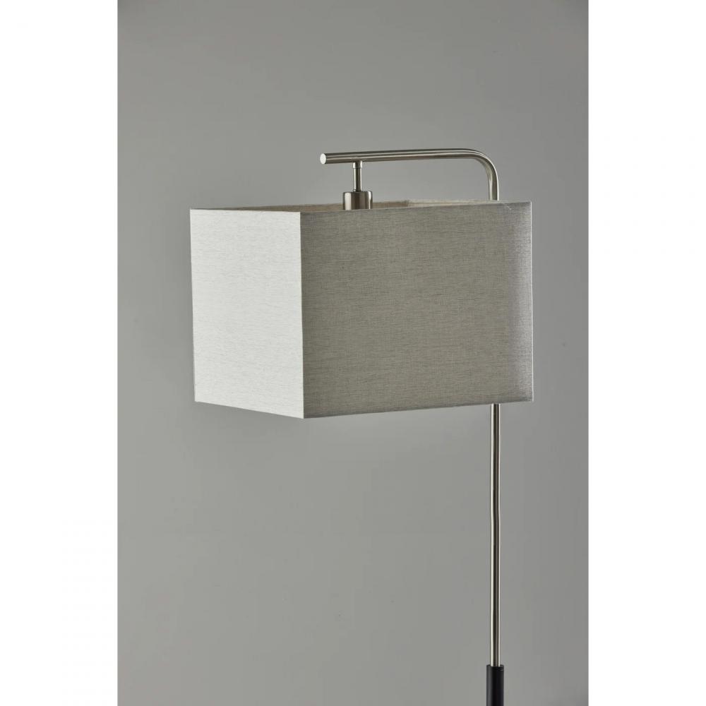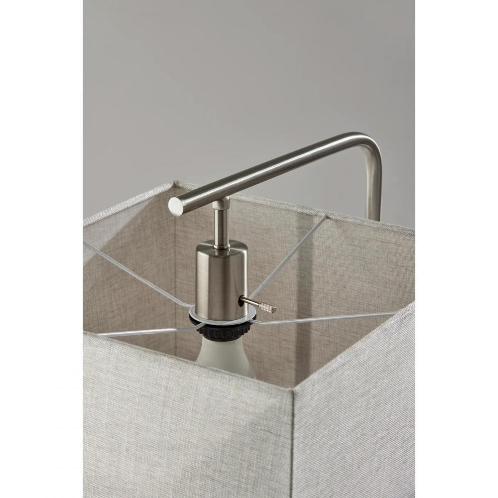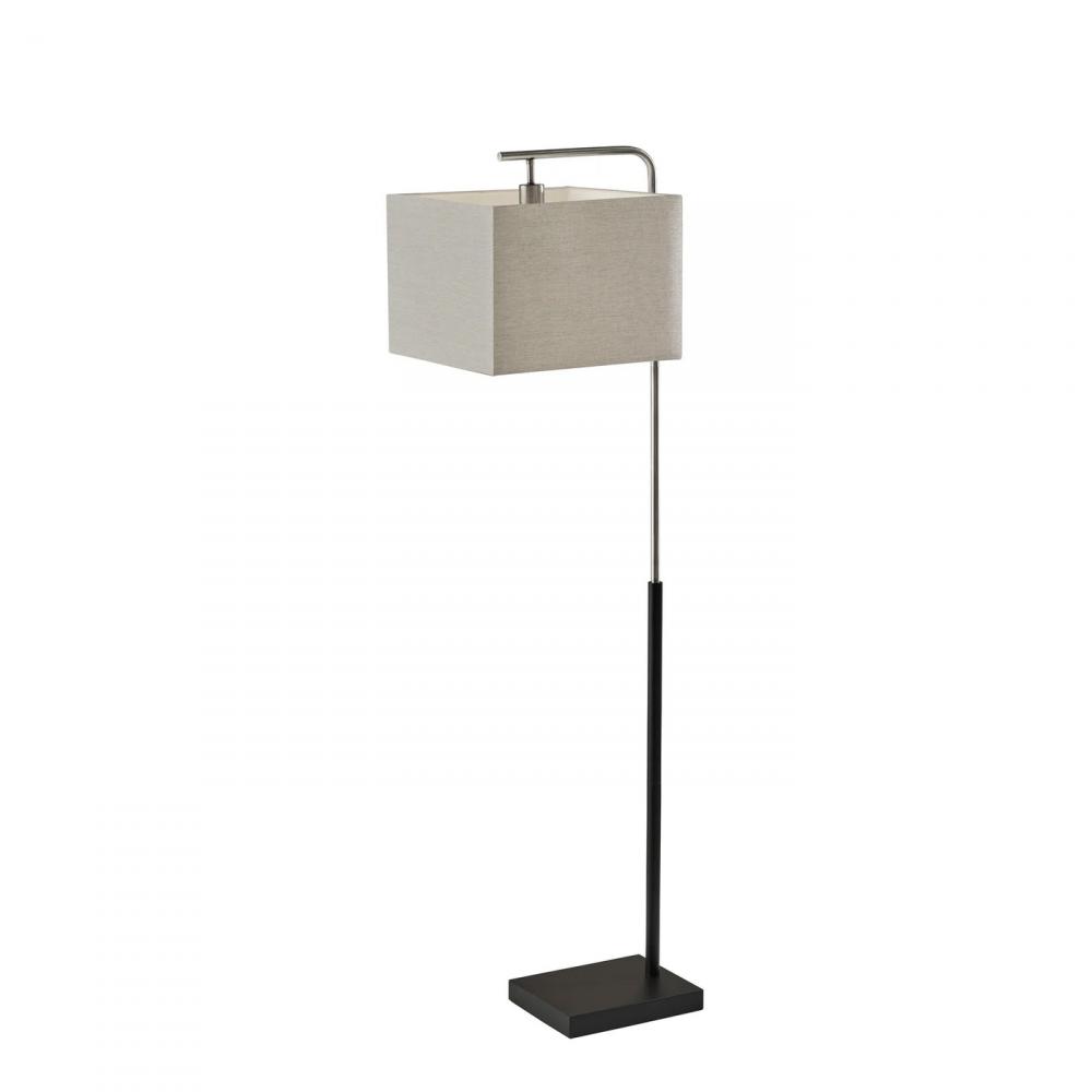 With a clean, minimal design and a simple color palette, the 60" Flora floor lamp exudes modern style. It features a black metal rectangular base measuring 11" by 8.5". The black finish continues up the stem before transitioning to a brushed steel finish leading to the square, light taupe textured fabric shade that softly distills the light. The 100W bulb (not included) is operated by a 3-way rotary switch located on the socket, allowing you to easily adjust the lighting level between low, medium, high, and off when using a 3-way bulb. When using a regular bulb, the rotary switch turns the lamp on or off. The Flora floor lamp is also available with a black and antique brass finish and off-white textured fabric shade.