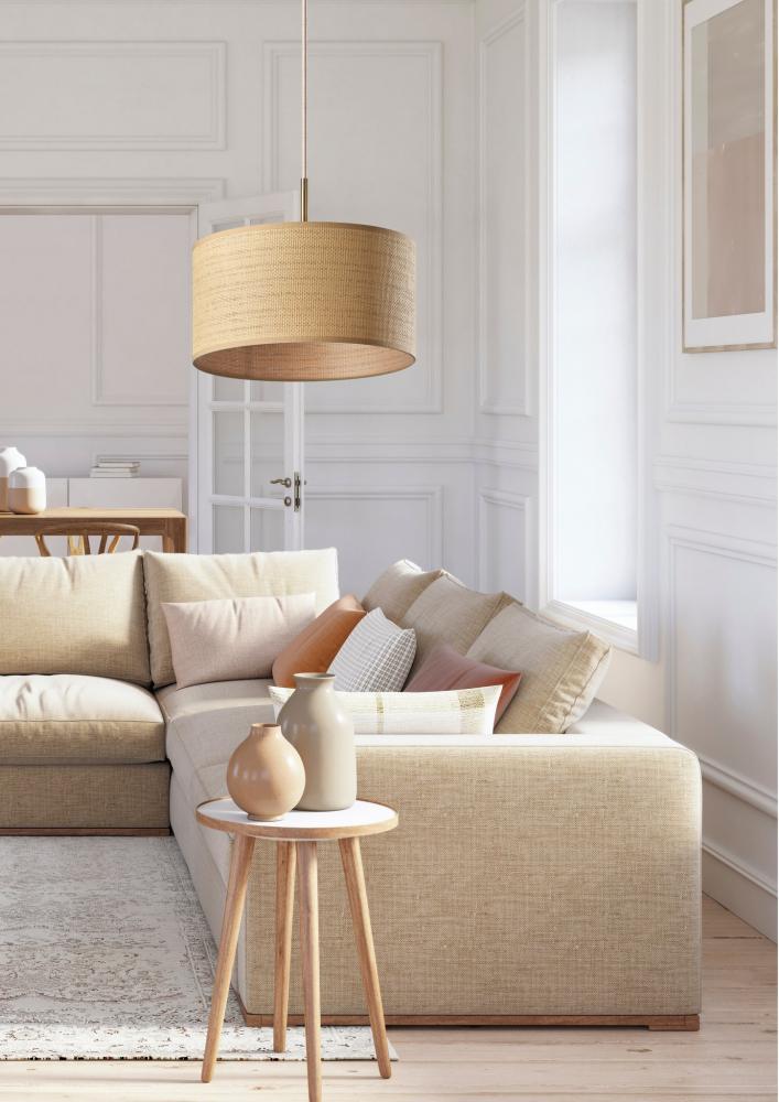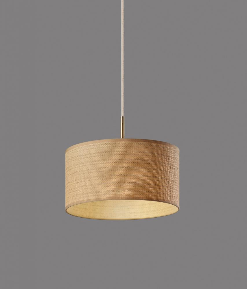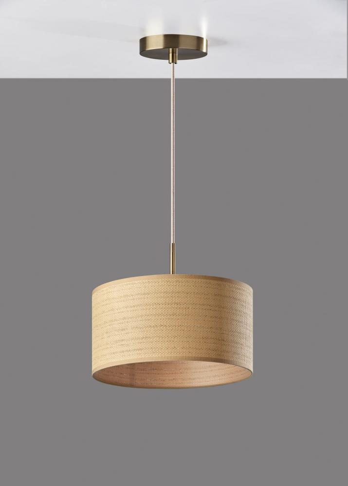 Sophisticated and timeless, the Harvest pendant light offers a warm and minimalist coastal design. The 15" diameter light can be hung by itself or paired with several more to create a stunning effect and add illumination to your kitchen, dining area, bedroom, or bathroom. Made of natural woven paper and trimmed with beige fabric along both the top and bottom for a neutral color scheme, the cylindrical shade adds stylish texture while infusing your space with warm light from a 100W bulb. This pendant light also features a 5" diameter round antique brass base. With a long, 15' white fabric-covered cord, the pendant height can be installed and adjusted to suit the needs of any room regardless of the ceiling height or can be used as portable lighting. Looking for color contrast in your decor? The Harvest pendant light is also available with a black finish on the base and black cord and trim. For a more striking addition to your room, Adesso also offers a larger version of this pendant light with a shade measuring 20" in diameter.