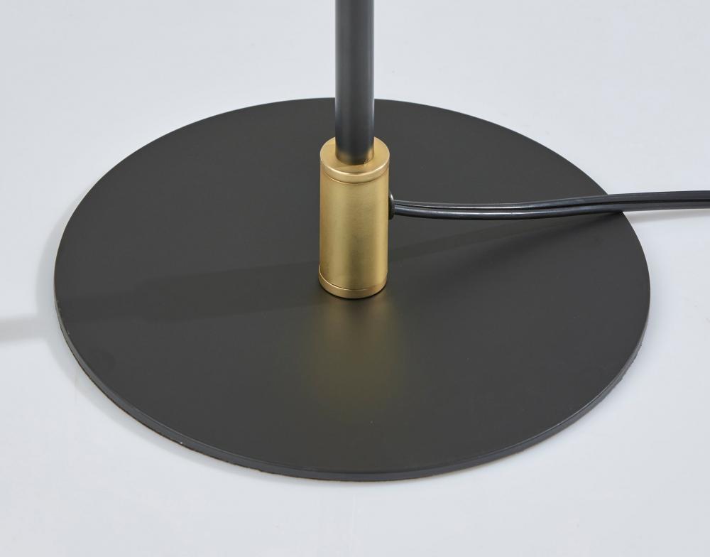 In classic form, the Kaden floor lamp's mixed metal finish and elegant design adds a polished accent to your space. Featuring a slim round base, thin pole and tapered conical shade, the dual-metal design is crafted of black metal and beautifully contrasting brass accents. Two 5W replaceable LED bulbs are included and illuminate your space with 450 lumens of warm light. A pull-chain switch in brass finish easily turns the light on or off, while the lamp is powered by a black fabric-covered cord. The Kaden floor lamp is also available with a brass finish and black metal accents. Complete your decor with the coordinating Kaden table lamp.