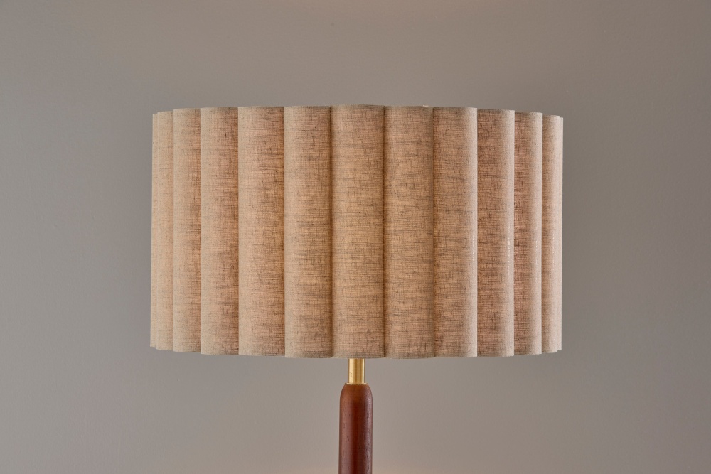 The Laine Table Lamp brings refined mid-century modern style to any space with its thoughtful blend of materials and soft, sculptural details. Featuring a warm walnut wood and antique brass metal base, it’s topped with a scalloped oatmeal linen fabric shade that adds texture and elegance. Standing at 27.5" tall, this lamp is the perfect statement piece for bedside tables, consoles, or living room accents. An on/off rotary socket switch offers easy control, combining timeless design with everyday function.