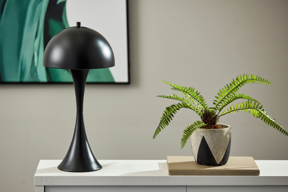 Introducing the 2604-01 Lennon Table Lamp, a stylish addition to your living space that seamlessly combines form and function. With a sleek black finish, this lamp exudes a contemporary vibe that complements any modern decor. The metal dome-shaped shade adds a touch of industrial charm, while the tapered hourglass-shaped base provides stability and visual appeal. Standing at 19.5 inches tall, it's the perfect height for desks, bedside tables, or entryway consoles. Equipped with an On/Off touch switch, the Lennon Table Lamp offers convenient operation and versatile lighting options.