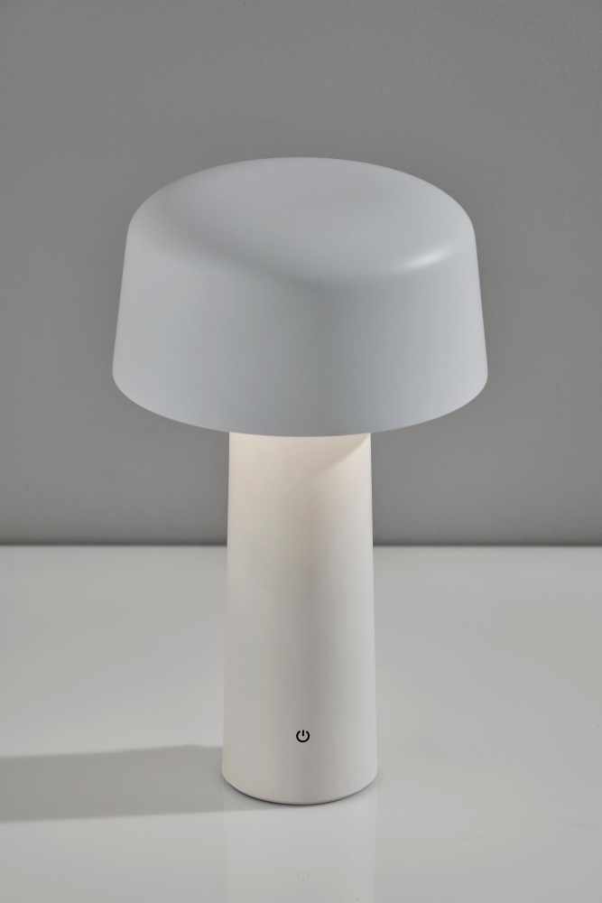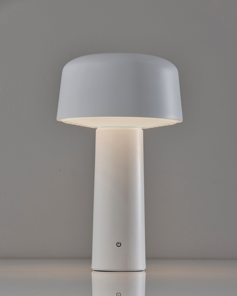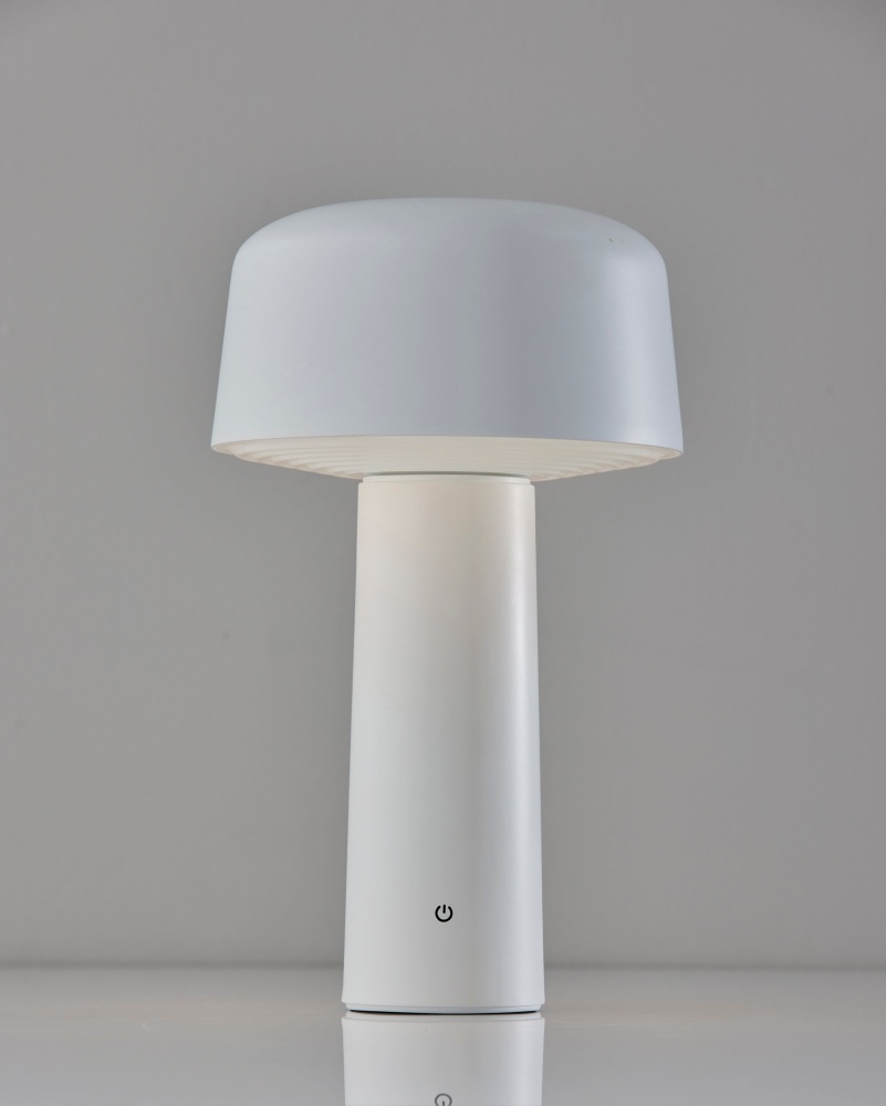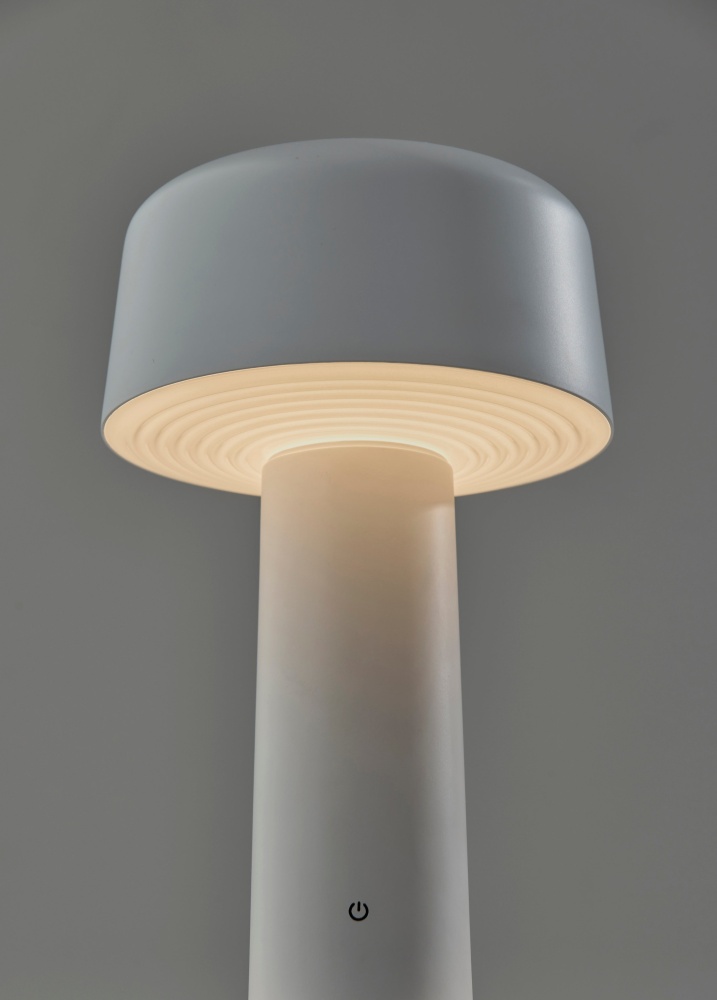 Introducing the 4094-02 Lenny Cordless LED Table Lamp, a versatile lighting solution designed to enhance any space with its clean aesthetics and practical features. Boasting a crisp white finish and a white metal shade with a ribbed frosted diffuser, this lamp exudes contemporary elegance while providing efficient illumination. Standing at a compact 10 inches tall, it's perfectly sized for tabletops, shelves, or outdoor settings, offering adjustable brightness levels with its 3 Level Touch Dimmer Switch. Powered by a rechargeable 1.5W LED, this lamp eliminates the need for cords, offering hassle-free portability and versatility. Plus, with an IPX4 location rating for outdoor use, it's built to withstand the elements, making it suitable for both indoor and outdoor environments.