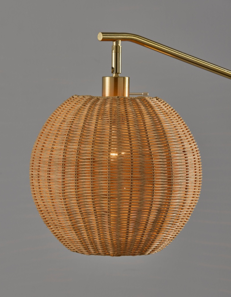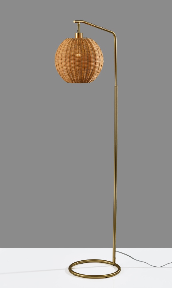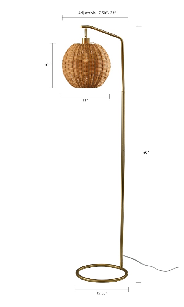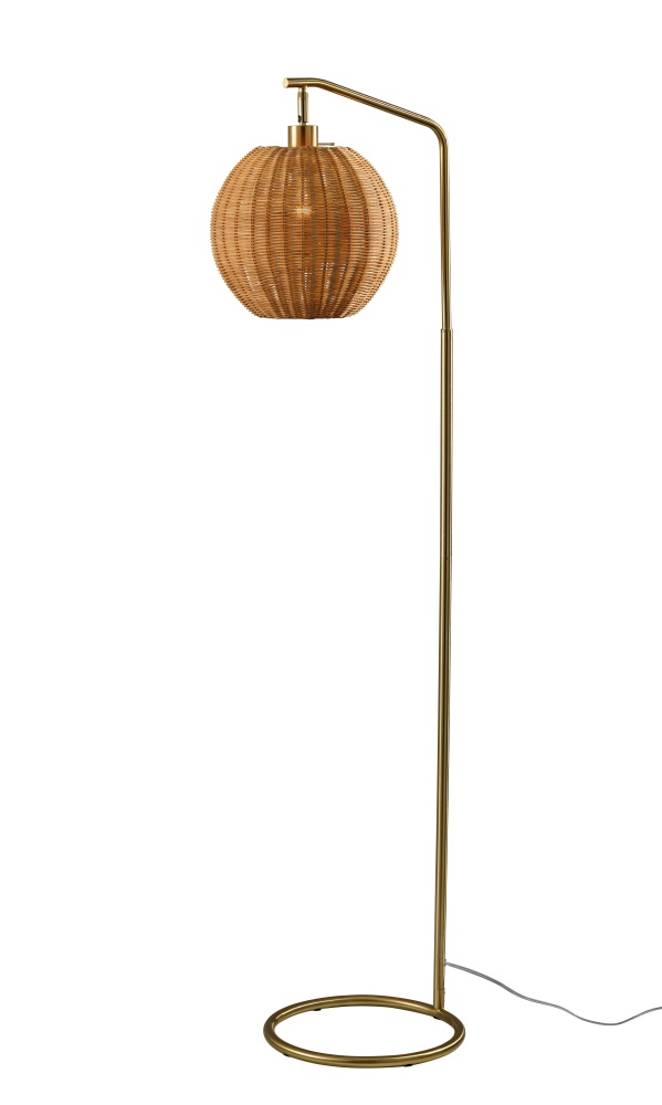 Introducing the 9407-21 Maeve Floor Lamp, a perfect fusion of vintage elegance and natural textures. The antique brass finish combined with the open ring metal base brings a sophisticated yet contemporary look to any space. Its globe-shaped brown rattan shade adds a warm, organic touch, offering soft, ambient lighting. Standing at 60 inches tall, the Maeve Floor Lamp is ideal for living rooms, bedrooms, or cozy reading nooks. Equipped with a 100W on/off rotary socket switch, this lamp effortlessly combines style and functionality.