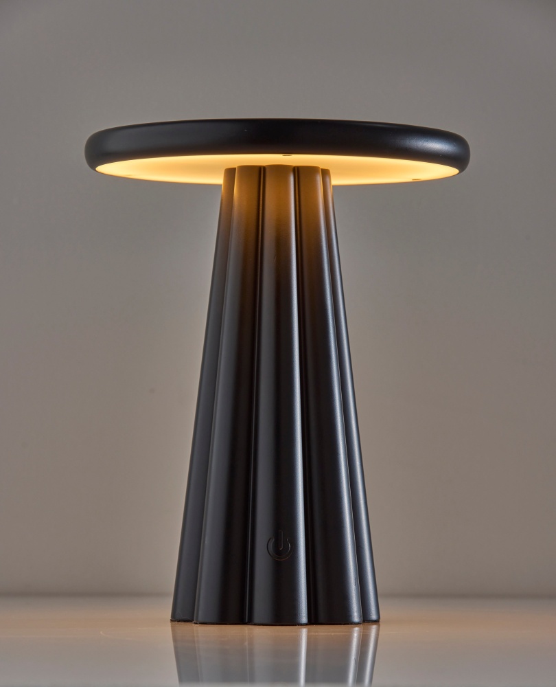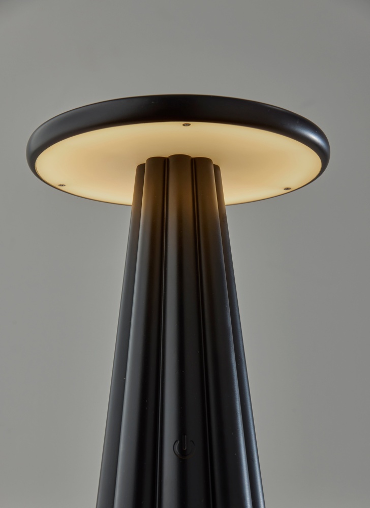 Introducing the 3118-01 Mattie Cordless LED Table Lamp, a stylish and versatile lighting solution suitable for both indoor and outdoor settings. With its elegant black finish and disc shade featuring a frosted diffuser, this lamp adds a touch of sophistication to any space. The tapered scalloped base provides stability and aesthetic appeal, while its compact size, standing at 10 inches in height, makes it perfect for tabletops and outdoor gatherings. Equipped with a 3 Level Touch Dimmer Switch, you can easily adjust the brightness to create the desired ambiance. Powered by a rechargeable 1.5W LED, it offers energy-efficient illumination that lasts. Additionally, with an IPX4 location rating for outdoor use, this lamp is resistant to splashing water, making it ideal for patio parties, camping trips, or alfresco dining.