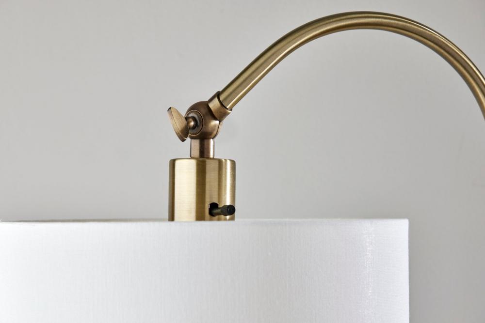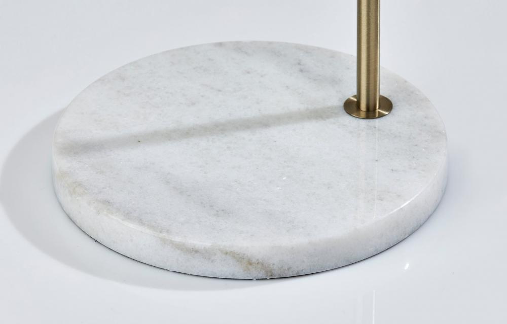 Introducing the 3829-21 Meredith Floor Lamp, a graceful fusion of timeless design and practical elegance. This floor lamp boasts an Antique Brass finish that imparts a touch of vintage charm to your decor. It is adorned with a White Fabric shade that diffuses a soft and welcoming glow. With a height of 59 inches and an arched arm design, the Meredith Floor Lamp seamlessly combines classic aesthetics with a modern twist, making it a versatile and stylish lighting solution for any room. Designed for ease of use, this lamp features an on/off rotary socket switch, providing straightforward control over the lighting. Anchored by a white marble base, the Meredith Floor Lamp not only ensures stability but also exudes sophistication. It effortlessly marries form and function, making it the perfect choice to illuminate and elevate your interior decor.