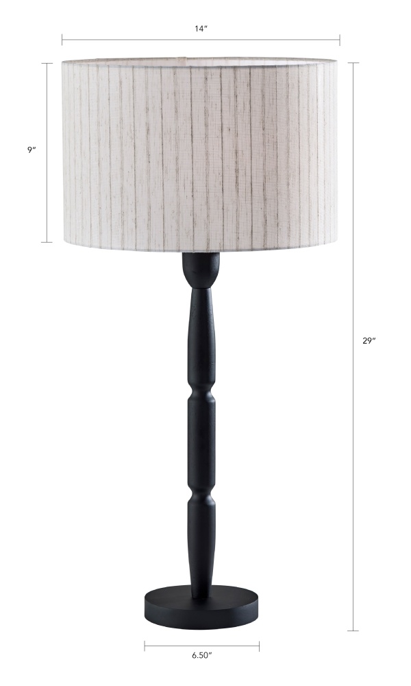 Finish options: Choose from black with beige shade or antique brass with white linen shade.