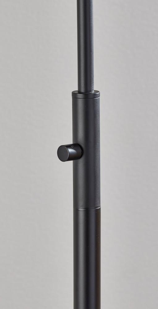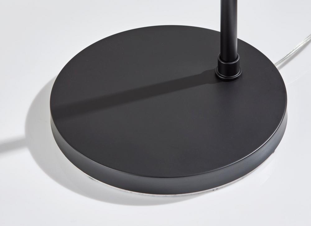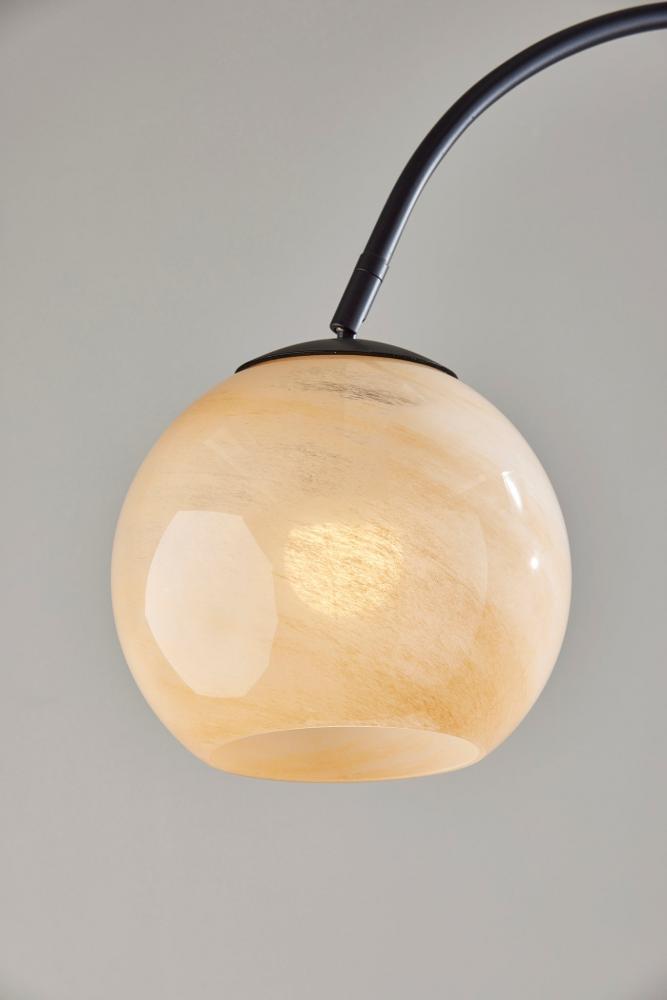 Add warmth and timeless style to your space with the Nolan arc floor lamp. The arcing design of this floor lamp makes it the perfect light source for reading in a recliner or working at a desk, while its slender metal pole and low-profile base make it easy to position near love seats, couches, armchairs, or side tables. A round 13.75" diameter base crafted of black metal supports a pole and slender, gracefully arcing arm. Suspended from the arm is a stunning glass globe with an eye-catching beige swirl pattern that throws warm light from a 60W bulb. For versatile lighting options, an articulation point at the base of the glass globe allows you adjust the shade, directing the light wherever it's needed. With a black rotary switch located on the pole, it is easy to turn the lamp on or off. Complete your decor with the coordinating Nolan floor lamp, desk lamp, wall lamp, flush-mount ceiling light, and pendant light.