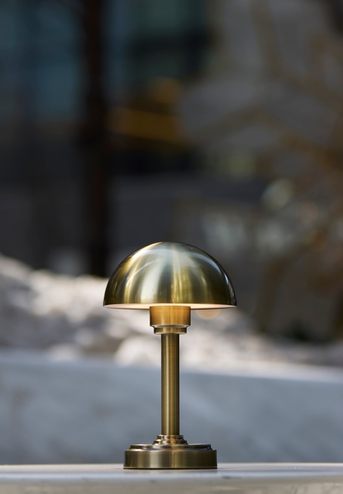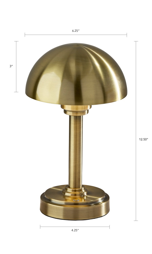 Introducing the Ollie LED Cordless Table Lamp — a modern, portable lighting solution designed to bring style and flexibility to any setting. Available in antique brass or black metal finishes, this 12.5" lamp features a sleek dome-shaped metal shade and a 3-level touch switch for customizable brightness. Powered by a 4000mAh rechargeable battery, Ollie delivers up to 16 hours of warm, 180-lumen LED light on the lowest setting and 5 hours on high. With a compact footprint and cordless design, it’s ideal for both indoor ambiance and outdoor gatherings.