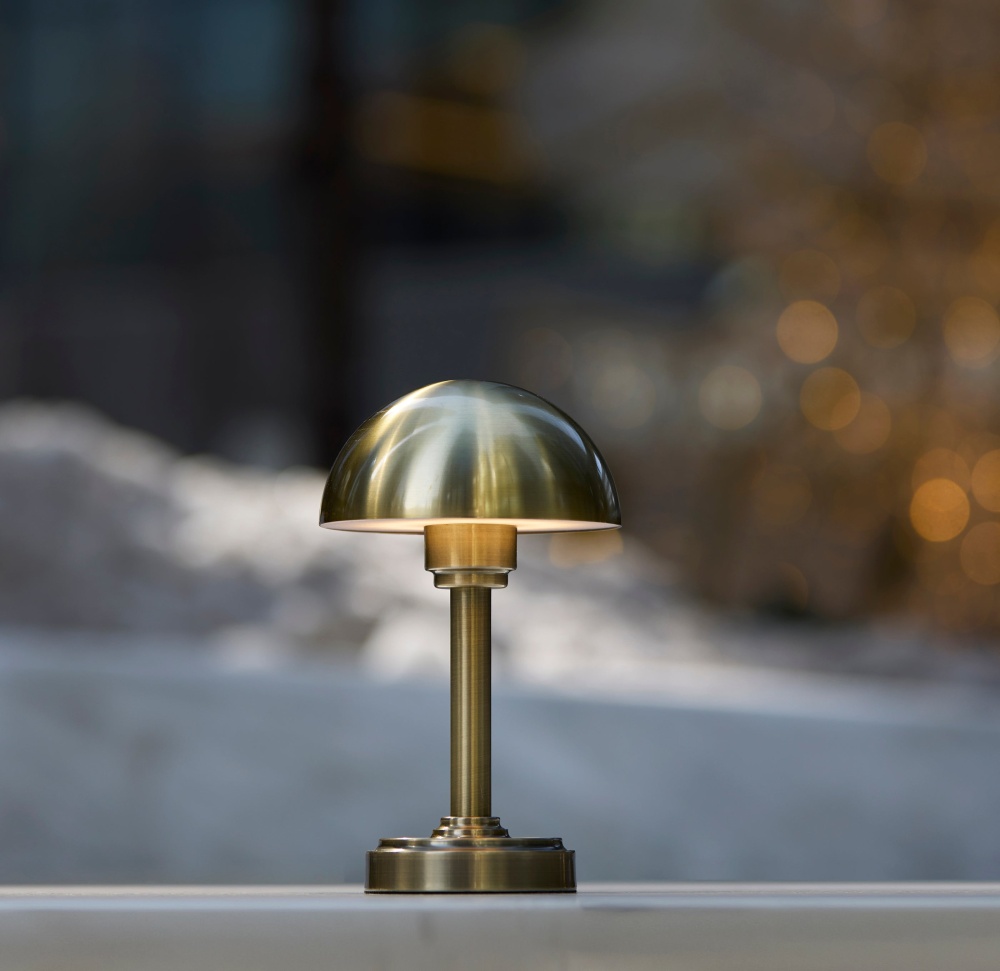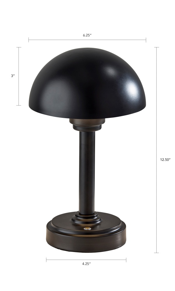 Introducing the Ollie LED Cordless Table Lamp — a modern, portable lighting solution designed to bring style and flexibility to any setting. Available in antique brass or black metal finishes, this 12.5" lamp features a sleek dome-shaped metal shade and a 3-level touch switch for customizable brightness. Powered by a 4000mAh rechargeable battery, Ollie delivers up to 16 hours of warm, 180-lumen LED light on the lowest setting and 5 hours on high. With a compact footprint and cordless design, it’s ideal for both indoor ambiance and outdoor gatherings.