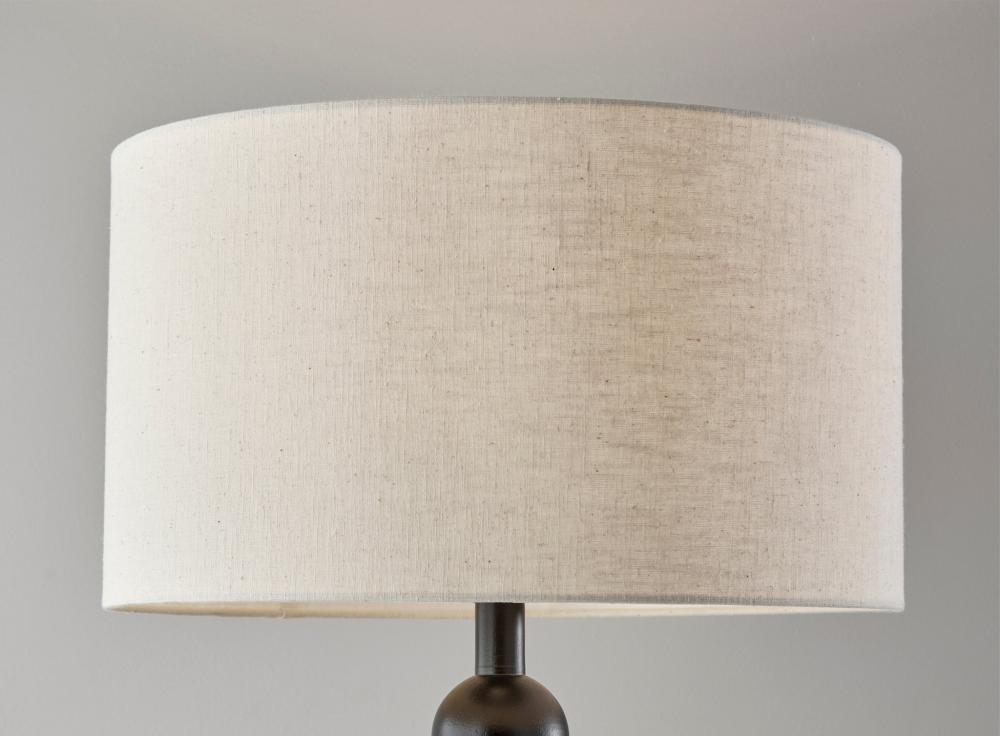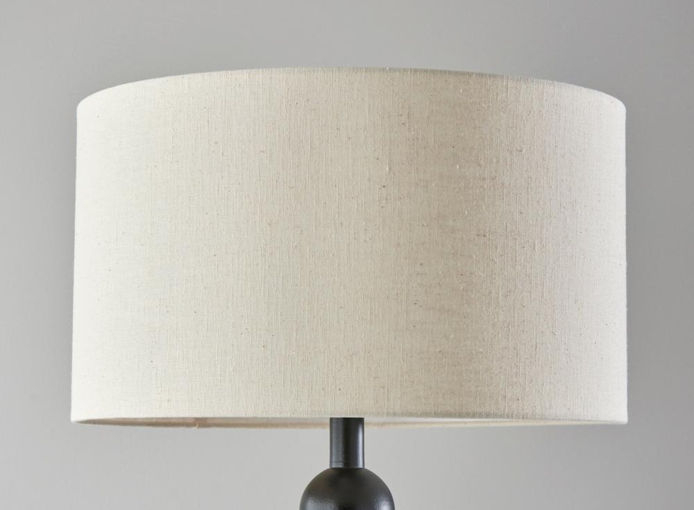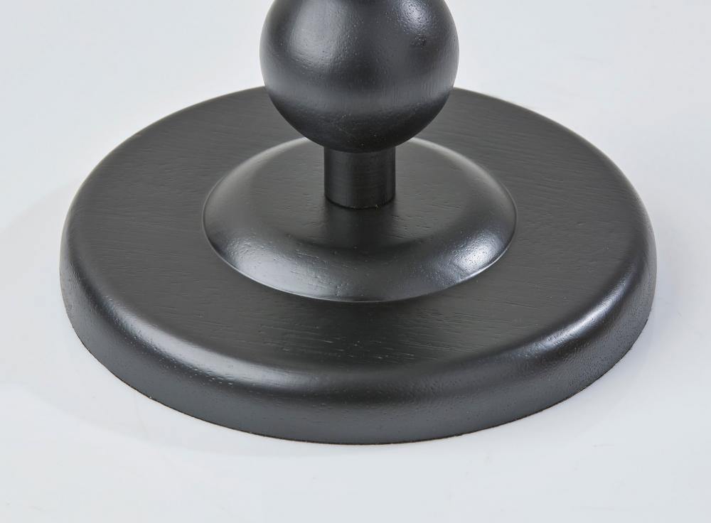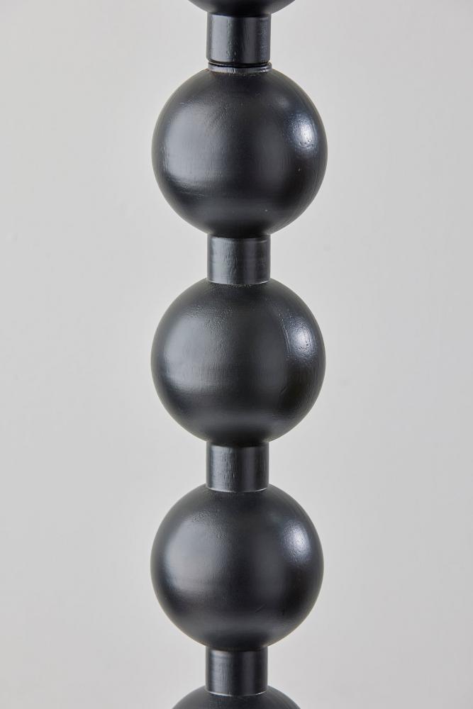 The 62" tall Orchard floor lamp illuminates your space with elegant symmetry and an eye-catching design. Constructed of black wood, a round base supports a matching tall stem designed as a series of stacked balls. The monochrome black of the lamp's body is complemented by the cream-colored linen drum shade. Easily operated by a 3-way rotary socket switch, you can adjust the brightness from a 150W bulb between low, medium, and high to suit your lighting needs. To coordinate with rustic, farmhouse, or coastal styling, this lamp is also available with a natural wood finish. Complete your decor with the Orchard table lamp.