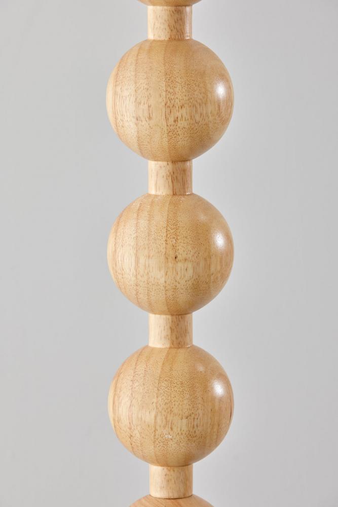 The 62" tall Orchard floor lamp illuminates your space with elegant symmetry and an eye-catching design. Constructed of natural wood that highlights the wood grain, a round base supports a matching tall stem designed as a series of stacked balls. The natural wood of the lamp's body is complemented by the cream-colored linen drum shade. Easily operated by a 3-way rotary socket switch, you can adjust the brightness from a 150W bulb between low, medium, and high to suit your lighting needs. To coordinate with contemporary or transitional styling, this lamp is also available with a black wood finish. Complete your decor with the Orchard table lamp.
