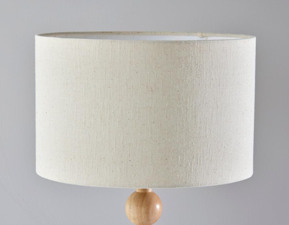 The Orchard table lamp illuminates your space with elegant symmetry and an eye-catching design. Constructed of natural wood that highlights the wood grain, a round base supports a matching tall stem designed as a series of stacked balls. The natural wood of the lamp's body is complemented by the cream-colored linen drum shade. Easily operated by a 3-way rotary socket switch, you can adjust the brightness from a 100W bulb between low, medium, and high to suit your lighting needs. To coordinate with contemporary or transitional styling, this lamp is also available with a black wood finish. Complete your decor with the Orchard floor lamp.