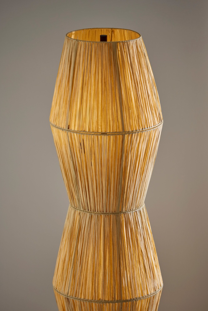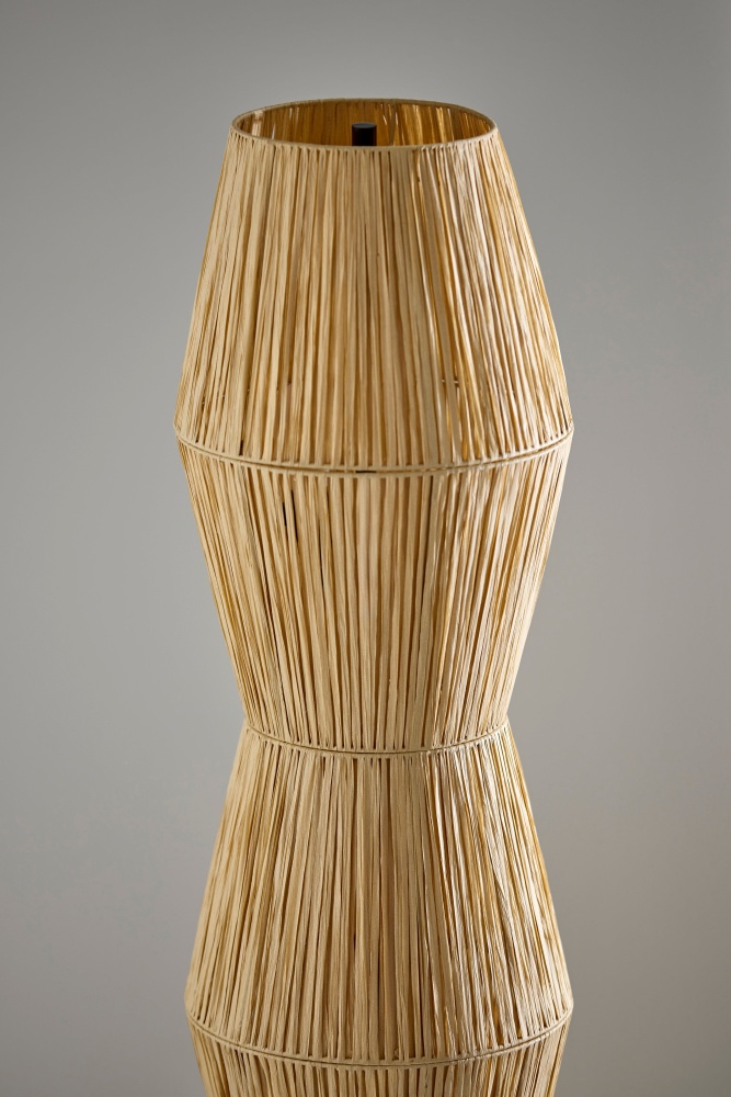Natural texture: Beige raffia grass shade brings warmth and organic style.