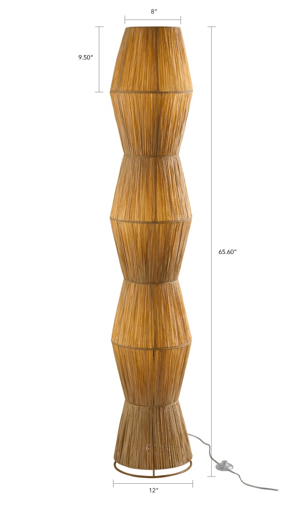 Introduce natural warmth and sculptural style to your space with the Renata Floor Lantern. Featuring a bold geometric silhouette and a beige paper raffia grass shade, this 55.5" tall floor lamp brings earthy texture and modern design together in one statement piece. The soft, diffused glow creates a relaxing ambiance, while the on/off foot step switch offers easy control. Whether placed in a living room, bedroom, or reading nook, the Renata adds an organic, artful touch to your decor.