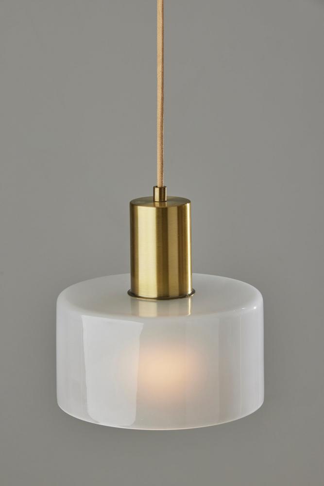 Introducing the 3937-21 Rhodes Pendant, a captivating and stylish lighting fixture that beautifully combines timeless design with modern flair. This pendant features an Antique Brass finish that imparts a touch of vintage charm and sophistication to your decor. Its glass shade is a study in contrast, with a glossy white exterior that exudes contemporary chic, while the frosted interior diffuses a soft and inviting glow. Suspended from a beige fabric-covered cord, the Rhodes Pendant adds a striking focal point to any room. Designed to provide both illumination and aesthetics, this pendant effortlessly elevates the ambiance of your space. Whether used as a single statement piece or in multiples to create a captivating lighting arrangement, the Rhodes Pendant adds a touch of timeless elegance to your home.