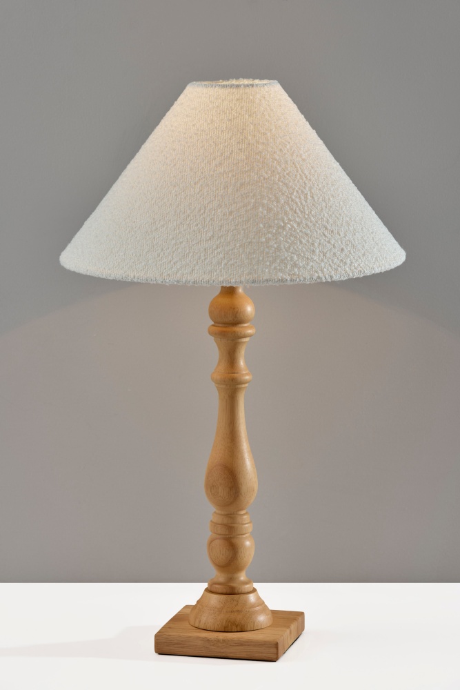 Introducing the 3886-12 Rigby Table Lamp, a timeless addition to your home lighting collection. Crafted with a turned natural rubberwood base, this lamp exudes rustic charm and warmth. Paired with a tapered white boucle fabric shade, it offers a soft and inviting glow, perfect for creating a cozy ambiance in any room. With its 3-Way Rotary Socket Switch, you can easily adjust the brightness to suit your needs. Elevate your interior with the understated elegance of the Rigby Table Lamp.