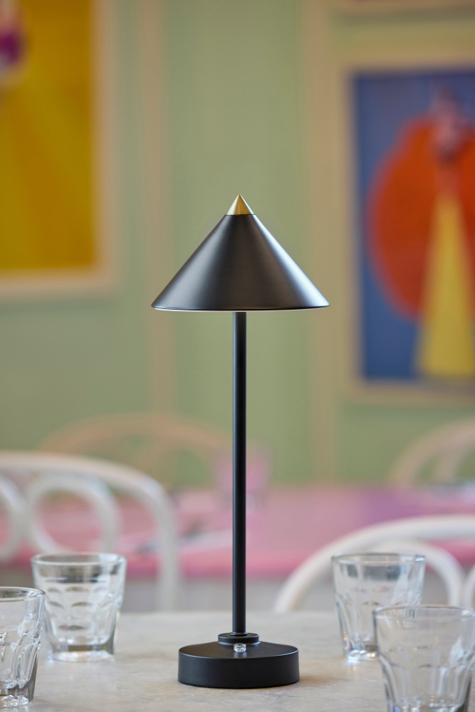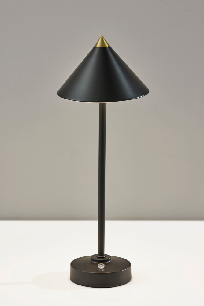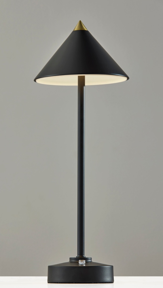 Introducing the 2601-01 Ritchie Cordless LED Table Lamp, a versatile lighting solution designed for both indoor and outdoor use. With its sleek black finish and elegant tapered cone-shaped shade, this lamp brings a touch of sophistication to any space. Standing at a height of 15 inches, it's perfect for tabletops, desks, or outdoor entertaining areas. Equipped with a convenient 3 Level Touch Dimmer Switch, you can easily adjust the brightness to create the perfect ambiance. Powered by a rechargeable 2W LED, it provides long-lasting illumination without the need for cords. Plus, with its IPX4 location rating, you can confidently use it outdoors, even in damp conditions.