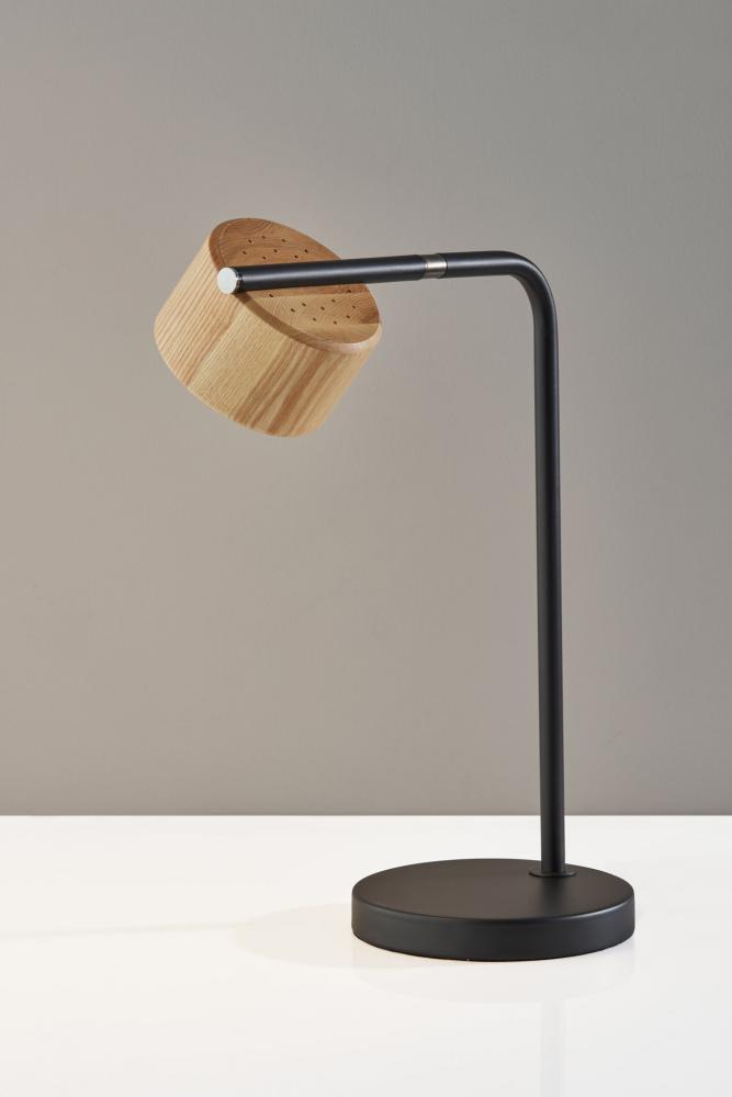 Featuring a blend of natural and contemporary elements and designs, the 17" tall 4Roman LED desk lamp adds distinctive style to desks, nightstands, and end tables. The round 7" diameter black metal base and matching thin stem with brushed steel accents present clean lines to complement contemporary or modern chic decor. For a contrast in color and material, the cylindrical lampshade is crafted of natural oak. The lamp also offers versatile lighting options at the touch of a finger. A touch step dimmer switch makes it easy to adjust the integrated 12W LED light between low, medium, high, and off, while the lampshade can be rotated to direct the light wherever it's needed. The lamp is also powered by a 5' black fabric-covered cord. Complete your space's decor with the coordinating Roman LED floor lamp.