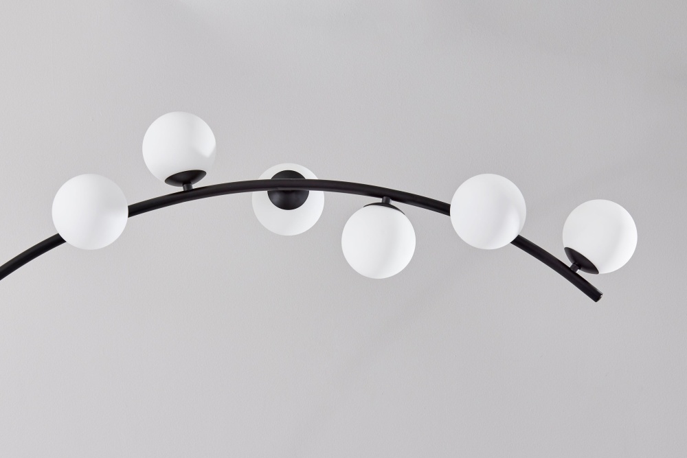 Elevate your decor with the Ronan LED Arc Lamp, a masterpiece of contemporary design and innovation. Boasting a striking black finish and Matte white opal glass globe-shaped shades, this lamp exudes modern elegance at every angle. Standing tall at 78 inches with a reach of 48 inches, it casts a generous glow while making a bold statement in any space. Equipped with 6 x 4W Integrated LED bulbs and a touch smart switch, the Ronan Lamp offers unparalleled control over both brightness and color temperature, allowing you to customize your lighting experience with ease. Illuminate your surroundings with style and sophistication with the Ronan LED Arc Lamp.