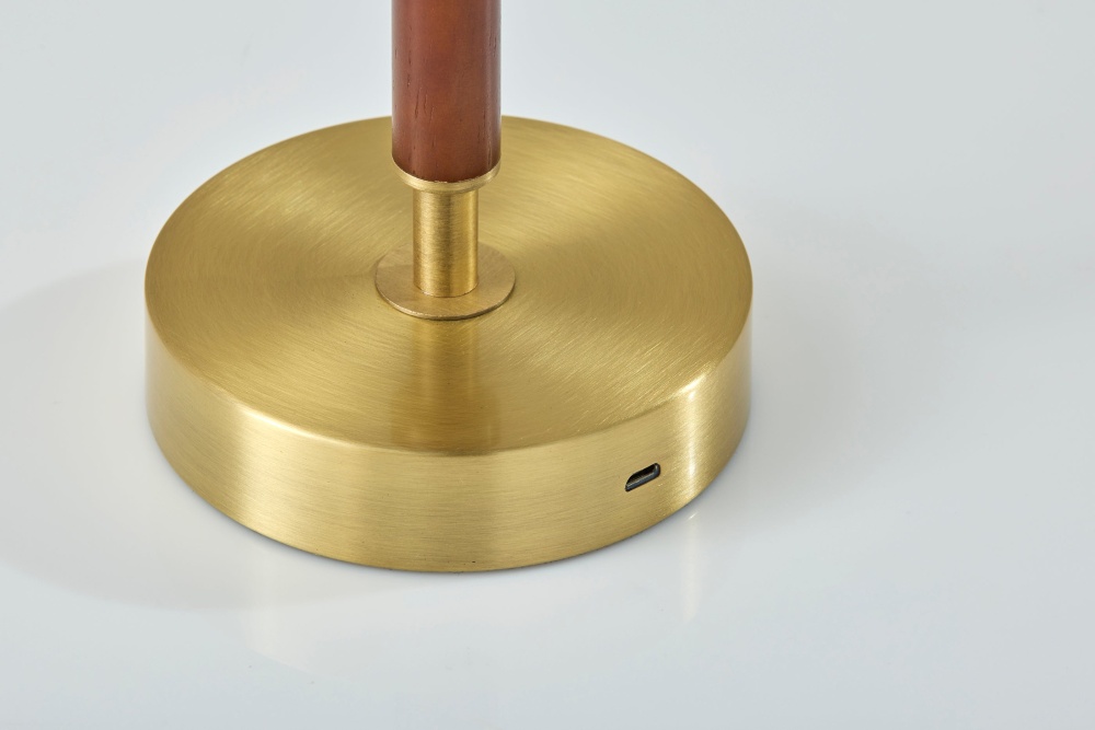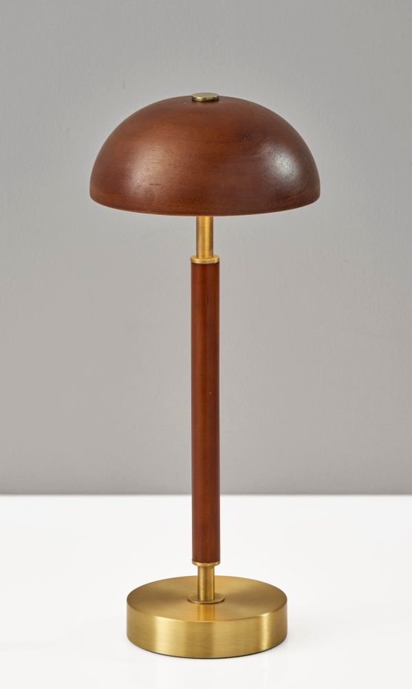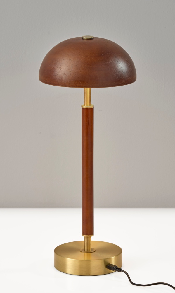 Ronny Cordless LED Table Lamp, a fusion of timeless elegance and modern functionality. Featuring an antique brass and walnut wood finish, this lamp exudes sophistication while adding warmth to any space. The walnut wood dome shade complements the overall design, casting a soft and inviting glow. Standing at a height of 14.625 inches, it's the perfect accent piece for desks, bedside tables, or any area in need of illumination. With a convenient 3 Level Touch Dimmer Switch, you can easily adjust the brightness to suit your mood or task. Powered by a rechargeable 1.5W LED, this lamp offers energy-efficient lighting without the hassle of cords or outlets. Portable and rechargeable, it provides versatile lighting wherever you need it.