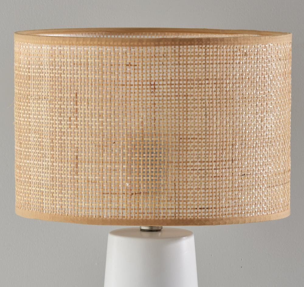 With soft curves and a warm, coastal design, the Sheffield table lamp makes a stylish addition to nightstands, end tables, or accent tables. The 22" tall lamp features a short, round base crafted of white ceramic leading to a short natural rattan drum shade. The woven rattan shade softly disperses light from a 100W bulb and is trimmed in beige fabric along the top and bottom, complementing the white base. Operated by a 3-way rotary switch, you can easily adjust the brightness between low, medium, and high to suit your lighting needs. For a contrasting color scheme, the Sheffield table lamp is also available with a black ceramic base, while the turquoise ceramic base option adds a vibrant pop of color. Complete your decor with the coordinating Sheffield table lantern, featuring a short ceramic base and tall rattan drum shade.
