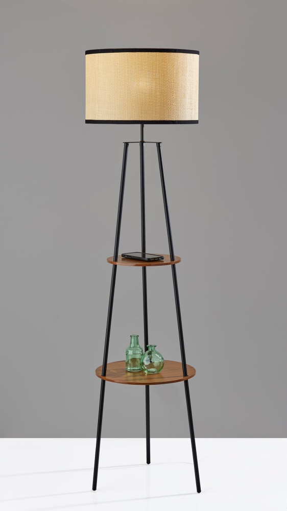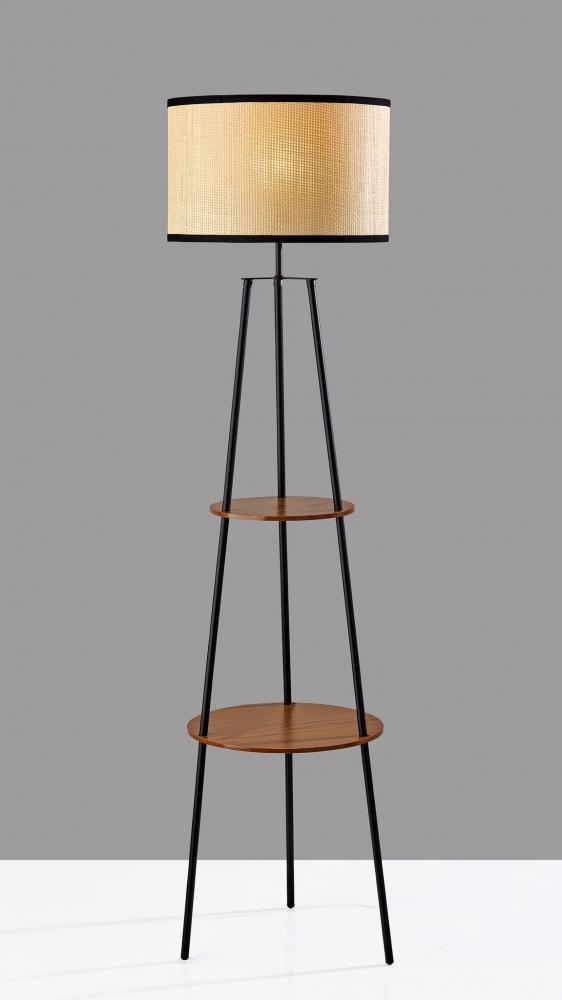 Introducing the SL3972-15 Shirley Shelf Floor Lamp, a versatile and stylish lighting solution that combines functionality and aesthetics. With its sleek black finish, this floor lamp effortlessly complements various decor styles. The highlight of this lamp is its paper rattan woven shade, which diffuses a warm and inviting glow, creating a cozy ambiance in any room. But the Shirley Floor Lamp offers more than just illumination; it features two round MDF shelves with a rich walnut wood veneer finish. These shelves provide a convenient and decorative space to display your favorite books, decorative items, or plants, adding a personal touch to your living space. The lamp also includes a 3-way rotary socket switch, giving you control over the brightness to suit your mood or task. Elevate your home decor with the Shirley Shelf Floor Lamp's blend of elegance and practicality.