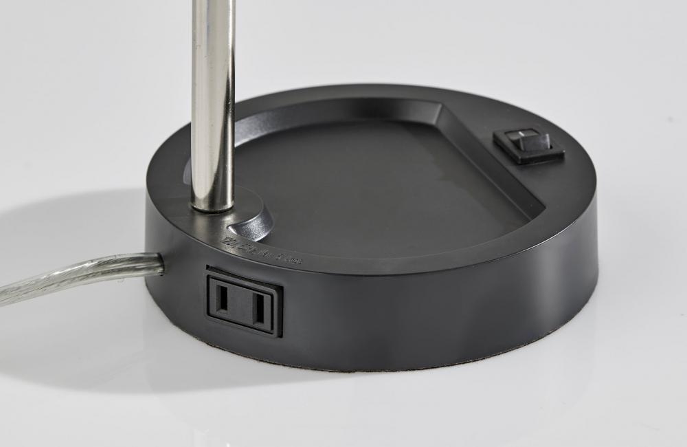 Introducing the SL3973-01 Slender LED Desk Lamp, where sleek design meets energy-efficient illumination. This lamp boasts a sophisticated blend of black and brushed steel finishes, making it a stylish addition to any modern workspace or living area. The slim black shade houses a 4W integrated LED, providing bright yet energy-efficient lighting that's easy on the eyes. Thanks to the adjustable gooseneck arm, you can effortlessly direct the light exactly where you need it, whether you're working, reading, or studying. The on/off rocker switch on the base ensures convenient operation with a simple tap. Elevate your desk with the Slender LED Desk Lamp, offering both form and function in a slender silhouette.